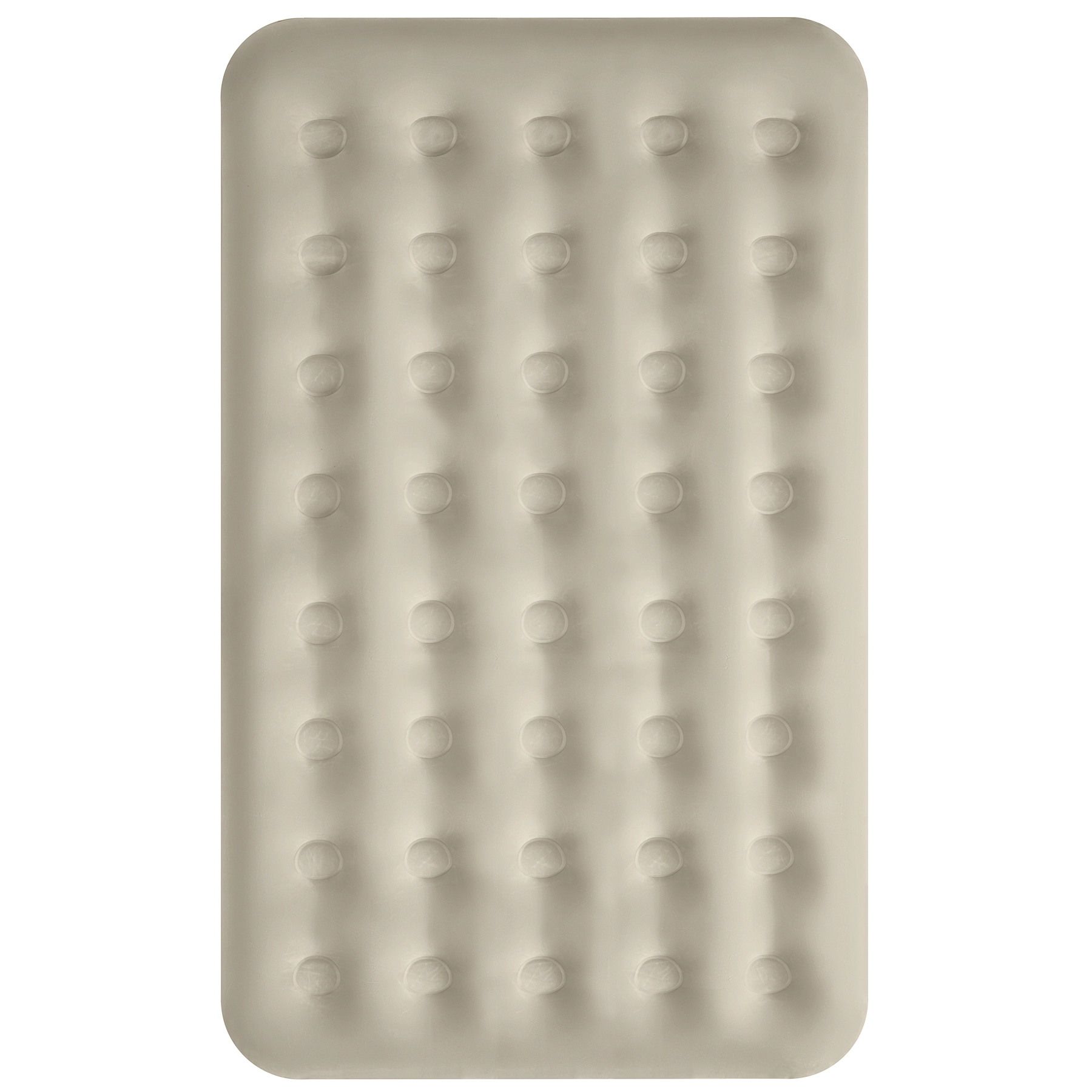 Robustan PVC materijal je otporan na habanje i vlagu, a pritom zadržava potrebnu elastičnost za ergonomsku potporu leđima. Zahvaljujući promišljenoj konstrukciji madrac drži oblik, minimizira ljuljanje i podnosi opterećenje do 200 kg bez gubitka stabilnosti. Dvostruki ventil omogućuje brzo i lako napuhavanje i ispuhavanje – ustima, ručnom, nožnom ili električnom pumpom.