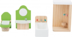 Priuštite djeci realistično uređenu kupaonicu za njihovu kućicu za lutke. Ovaj 4-dijelni set u modernim bojama kombinira masivno drvo i izdržljive elemente za svakodnevnu igru. Veličinom odgovara savitljivim lutkama do 12 cm i izvrsno se uklapa u većinu kućica.