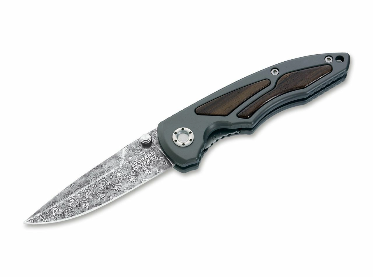 Ekskluzivni kolekcionarski džepni nož BÖKER MANUFAKTUR SOLINGEN Leopard-Damast I s 300-slojnim damask sječivom kovanim od čelika tenka Leopard I. Nudi ručno otvaranje palčanim pinovima, pouzdanu Linerlock kočnicu i vrhunsku dršku od eloksiranog aluminija s umecima od drveta Ziricote. Uključena je poklon kutija, certifikat autentičnosti i pojedinačni serijski broj.