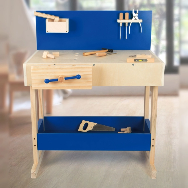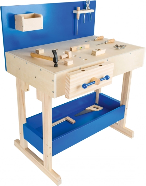 Drveni radni stol nudi djeci mogućnost oponašanja stvarnog rada s alatima, razvijajući njihovu finu motoriku i maštu. Stol je opremljen raznim alatima kao što su pila i čekić.
