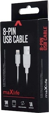 Univerzalni Maxlife kabel s 8‑pinskim konektorom za iPhone, iPad i iPod osigurava pouzdano punjenje 1 A i stabilan prijenos podataka. Zahvaljujući duljini od 1 m i fleksibilnoj konstrukciji ugodan je za uporabu kod kuće i na putu.