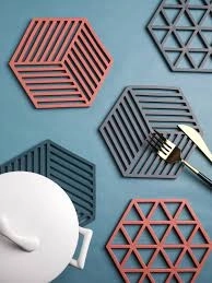 Šesterokutni oblik s dijagonalnim prorezima daje podlozi elegantan izgled i ujedno potiče cirkulaciju zraka za brže hlađenje posuđa.