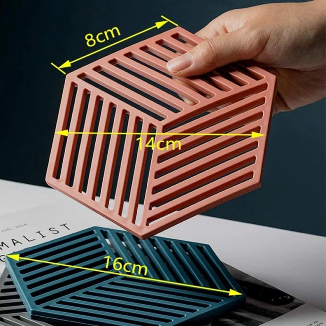 Ova izdržljiva silikonska podloga dizajnirana je za svakodnevnu upotrebu – sigurno drži vruće lonce, tave i posude za pečenje, a istodobno štiti radne površine od oštećenja toplinom ili ogrebotina. Minimalistički dizajn šesterokuta s dijagonalnim prorezima daje vašoj kuhinji moderan izgled.