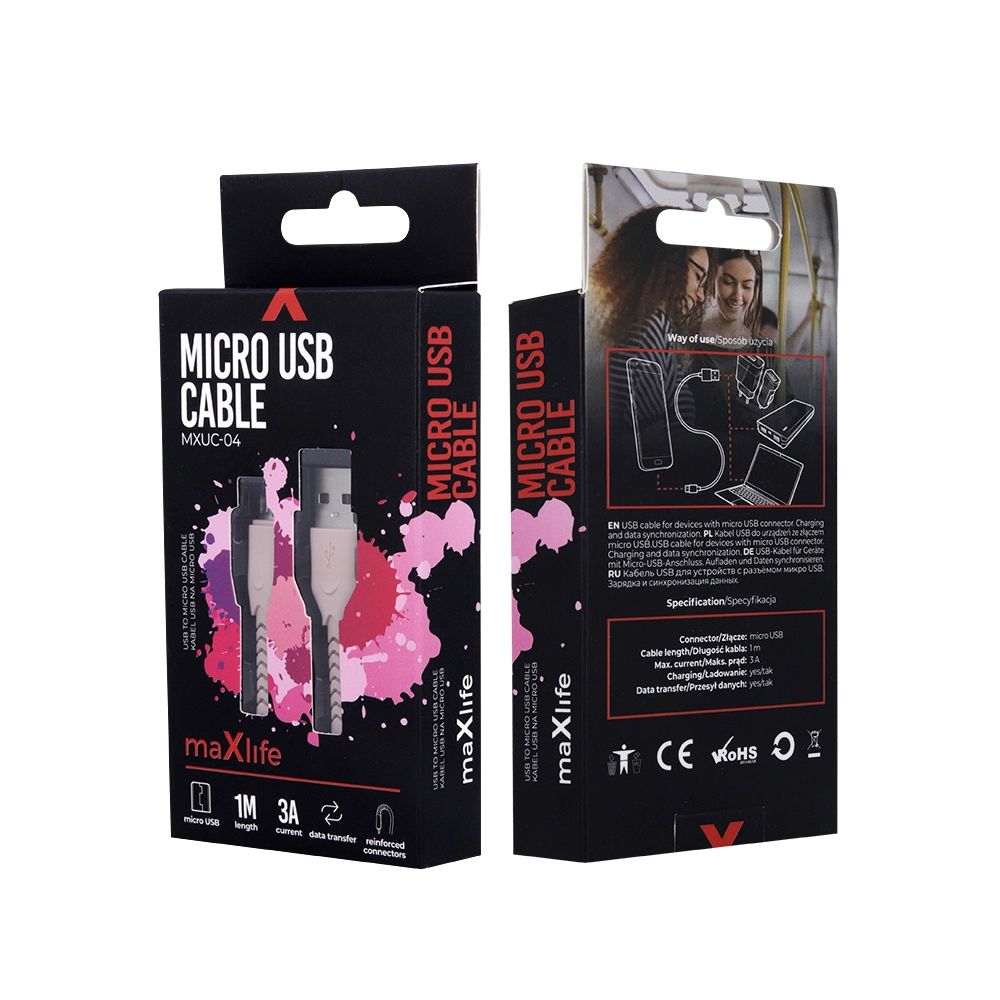 Tražite praktičan i izdržljiv kabel za uređaje s microUSB-om? Ovaj ružičasti Maxlife kabel nudi brz prijenos podataka i učinkovito punjenje s podrškom struje do 3 A. Zahvaljujući najlonskoj pletenici kabel je otporan na lomljenje i petljanje, dok ojačani konektori štite od oštećenja.