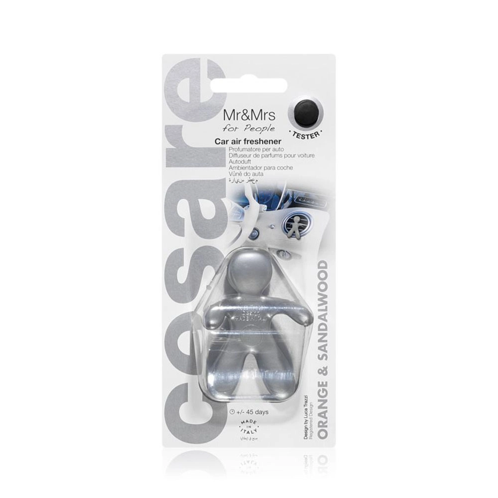 Osvježite unutrašnjost svog vozila kultnim osvježivačem Mr & Mrs Fragrance Cesare u srebrnom izdanju. Elegantna figurica lako se zakači na rešetku ventilatora te uz strujanje zraka otpušta intenzivan miris naranče i sandalovine. Miris je izrađen od esencijalnih ulja bez alkohola, pa je ugodan, prirodan i nježan.