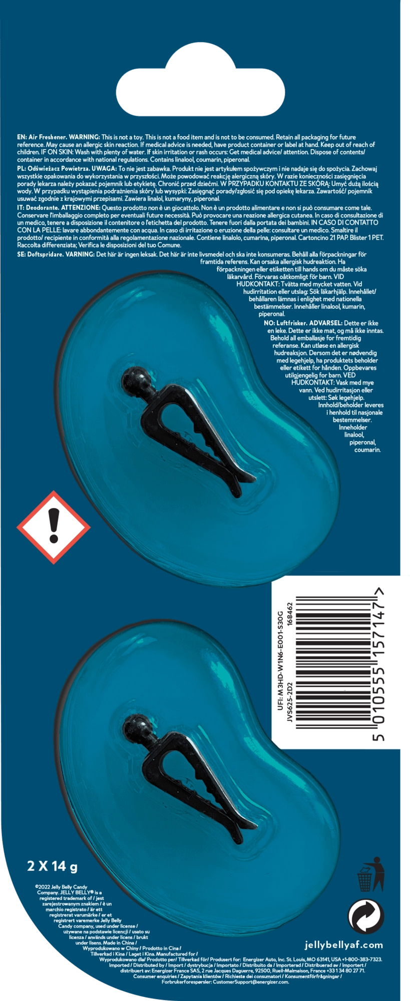 Osvježite svoj prostor kultnim mirisom nadahnutim legendarnim bombonima JELLY BELLY. Varijanta Blueberry oduševit će slatkim borovničnim tonovima s laganim dodirom kiselosti – idealno za vozače i ljubitelje svježih mirisa u domu ili uredu.