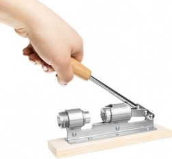 Robusno lupalo s polužnim mehanizmom kombinira nehrđajući čelik i kvalitetno drvo za maksimalnu izdržljivost i stabilnost. Zahvaljujući podesivom prihvatu, bez suvišnog napora lako otvarate i veće orahe te manje lješnjake.