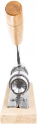 Stabilna drvena podloga drži alat čvrsto na radnoj površini, pa je lupanje brzo, precizno i sigurno. Upravljanje odozgo zahtijeva manje sile nego klasična kliještasta lupila i olakšava rad i pri dužoj uporabi.