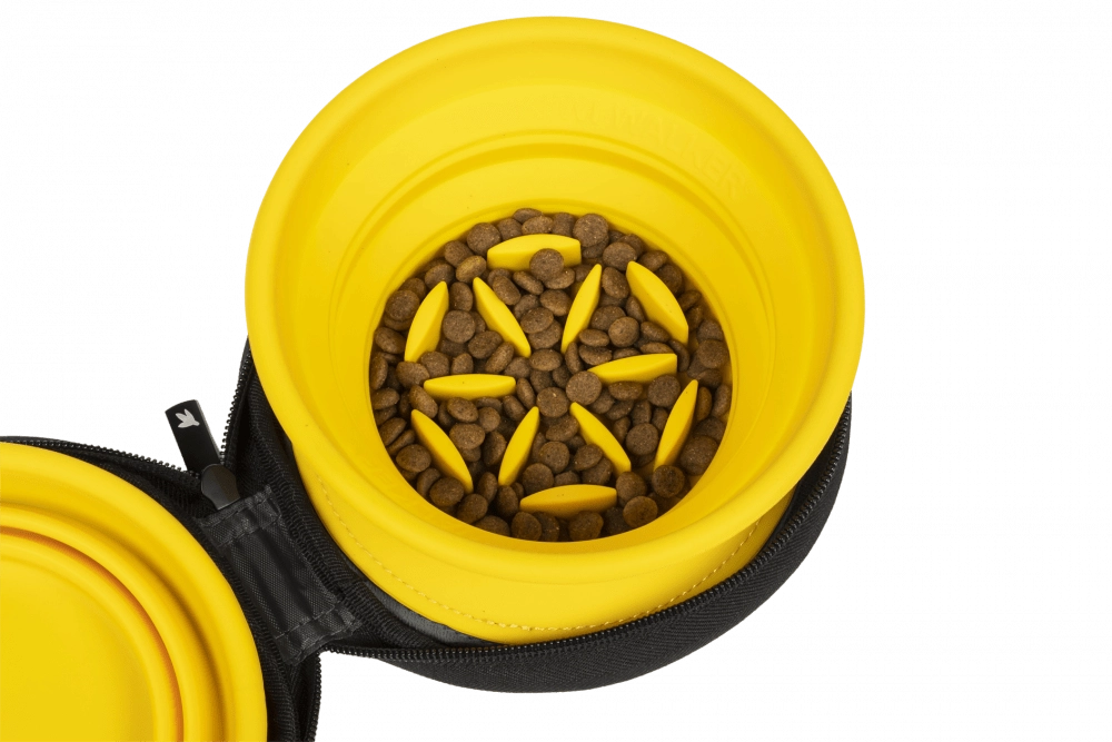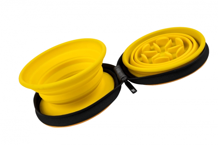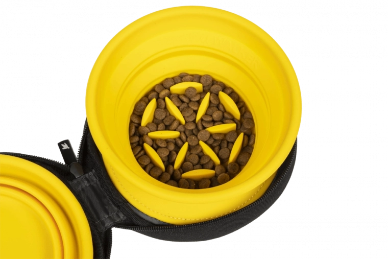 Posebna konstrukcija jedne zdjelice djeluje kao slow feeder, koji usporava gutanje, potiče bolju probavu i pomaže spriječiti nadutost. Druga zdjelica je glatka za svakodnevnu upotrebu. Obje su lagane, izdržljive i jednostavne za čišćenje – idealne za izlete, godišnje odmore i svakodnevnu uporabu.