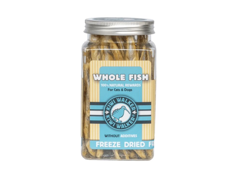Zdrava i ukusna poslastica za pse i mačke – liofilizirane ribice Kiwi Walker zadržavaju prirodan okus i hranjive tvari. Izrađene su 100% od ribe, bez dodanih aditiva i konzervansa, idealne za prirodno nagrađivanje i osjetljive želuce.