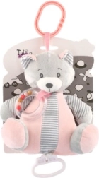 Naš natezni plišani medo dizajniran je tako da pruža djeci udobnost i osjećaj sigurnosti. Glazbeni mehanizam unutar mede pokreće nježnu melodiju idealnu za uspavljivanje. Plišani materijal je mekan i nježan prema dječjoj koži. Igračka je opremljena zvečkom smještenom kod vrata koja pri pokretu stvara zvukove i potiče slušnu percepciju djeteta. Zahvaljujući praktičnoj kopči medu je jednostavno pričvrstiti na krevetić, kolica ili autosjedalicu, što je idealno za korištenje kod kuće i na putu.