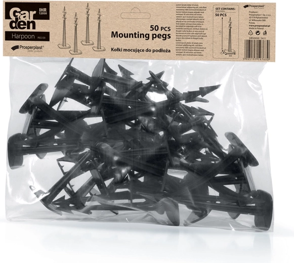 Učvršćivači HARPOON PEG 120 dizajnirani su za brzu i sigurnu ugradnju vrtnog tekstila, malčirajućih geotekstila, mreža protiv korova i folija. Profil s protuzupcima i oštrim završetkom osigurava visoko prianjanje u raznim tipovima tla, tako da materijal ostaje na mjestu i pri vjetru ili kiši.