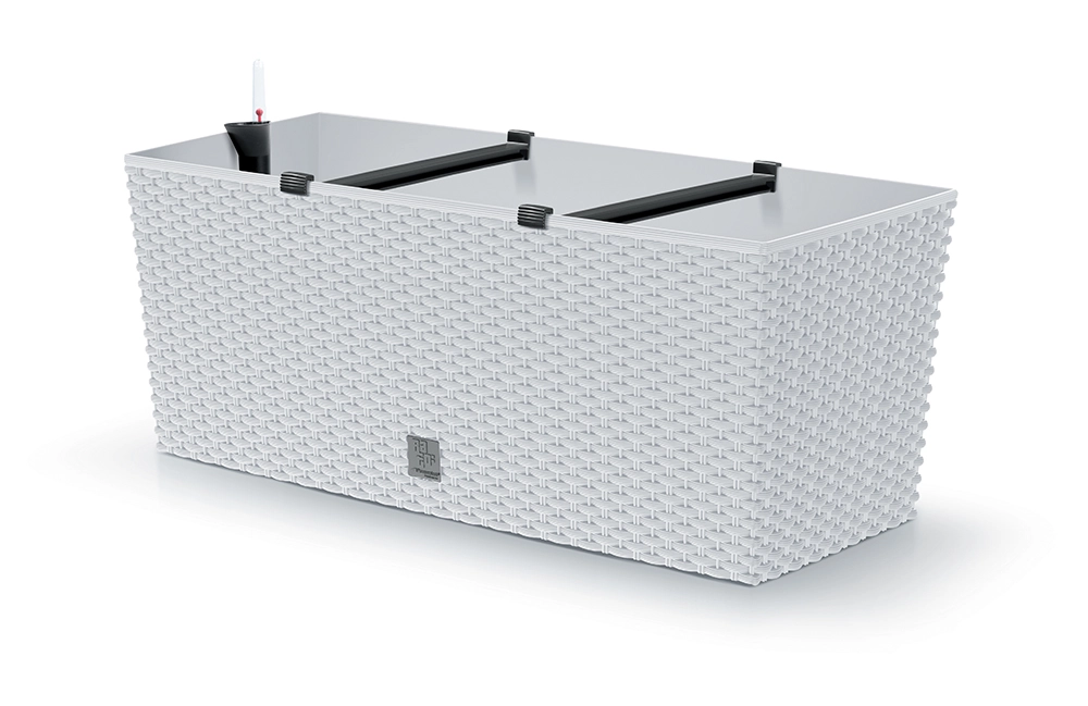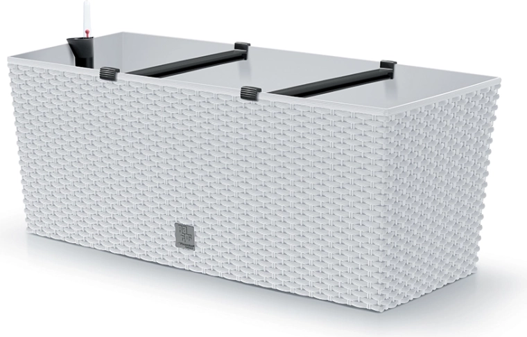 Stilizirana pravokutna žardinjera s dekorom ratan pletiva idealna je za prozorsku dasku, balkon, terasu i verandu. Svijetla bijela boja osvjetljava prostor, a čiste linije pristaju modernom i klasičnom uređenju. Izdržljiva plastika jamči malu težinu i odličnu otpornost na vremenske utjecaje.