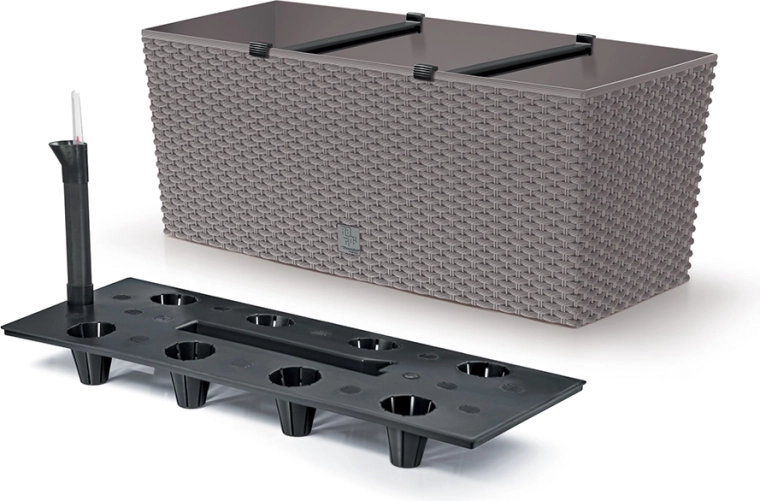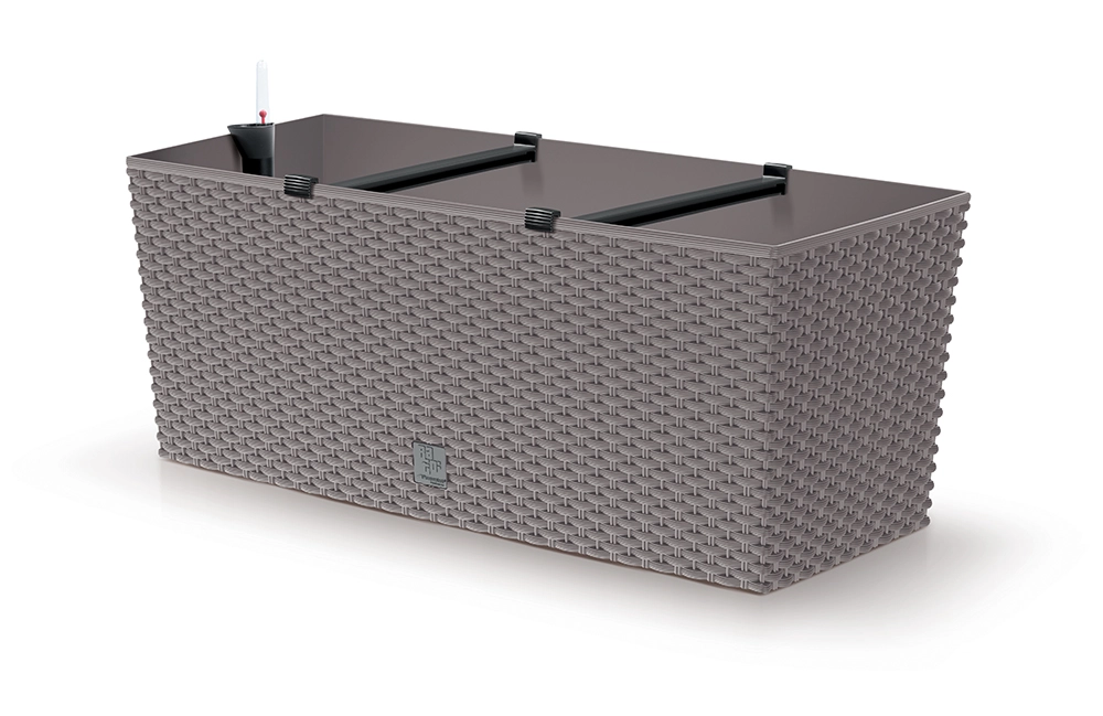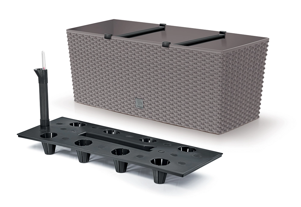 Otkrijte stiliziranu žardinjeru s ratan teksturom koja će odlično nadopuniti balkon, terasu i prozorsku dasku. Robustna plastika osigurava otpornost na vremenske utjecaje i postojanu boju bez blijeđenja. Zahvaljujući samozalijevajućem sustavu supstrat dulje ostaje vlažan, pa rjeđe zalijevate i biljke napreduju čak i u vrućim danima.