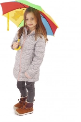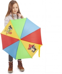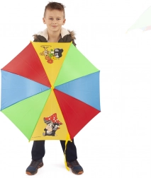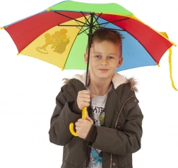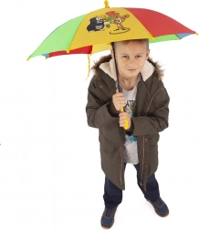 Bez žurbe prije pljuska – dječji kišobran s motivom KRTICA praktičan je, lagan i siguran za svakodnevno nošenje. Šareni paneli s veselim ilustracijama privlače na prvi pogled, a žuta zakrivljena drška pristaje malim rukama.