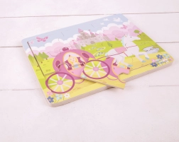 Uđite u čaroban svijet s Drvenim puzzle Princeza s kočijom od Bigjigs Toys. Djeca će se rado uroniti u slaganje i uživati u predstavi magične scene pred njima. Svaki komad je pažljivo dizajniran za sigurno i lako držanje.