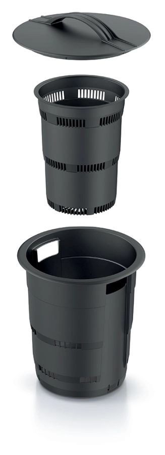 Podzemni mini komposter Combiosoil pametno je rješenje za lokalno obogaćivanje tla. Postavlja se izravno u gredicu gdje organske ostatke postupno razgrađuju mikroorganizmi u tlu i gliste. Perforacije sa strana osiguravaju optimalno strujanje zraka i izravno otpuštanje hranjivih tvari do korijena biljaka.