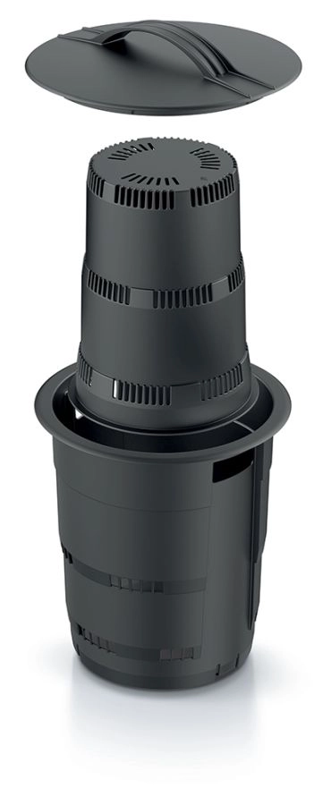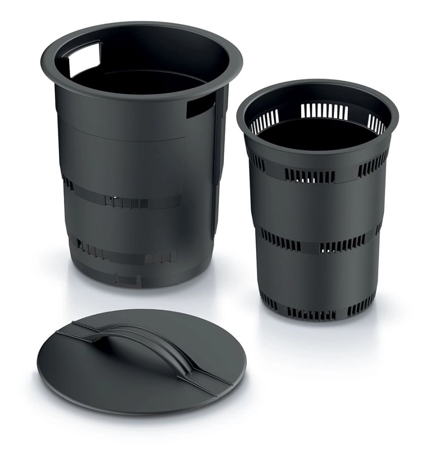Zahvaljujući kompaktnoj visini od 25 cm i uklonjivom poklopcu, rukovanje i dopunjavanje su jednostavni. Robusna plastika otporna je na vlagu i vremenske uvjete, pa komposter bez poteškoća podnosi cjelogodišnji rad. Pogodan za kore povrća i voća, talog kave, sitni biljni otpad ili usitnjene ljuske jaja.