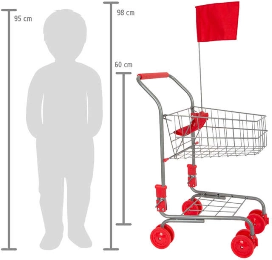 Stilska dječja shopping kolica u srebrnoj boji s crvenim detaljima donose djeci sate zabave u igri trgovine. Nude prednje kotače koji se okreću 360° za lako upravljanje, sklopivo sjedalo za lutku i prostranu košaru za namirnice i igračke. Idealan dodatak za dječju trgovinu i za imitiranje odraslih tijekom “kupovine”.