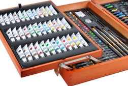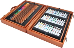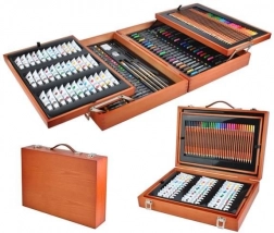 Obogatite svoju umjetničku opremu s ovim čudesnim setom za crtanje koji sadrži bojice, flomastere, akvarel i uljne boje. Dobijte kvalitetu i izdržljivost koju nudi čvrsti drveni kofer s praktičnim hvataljkom i zatvaračima za jednostavno nošenje i siguran transport. Svaki element ima svoje mjesto, što osigurava da sve ostane organizirano i spremno za upotrebu.