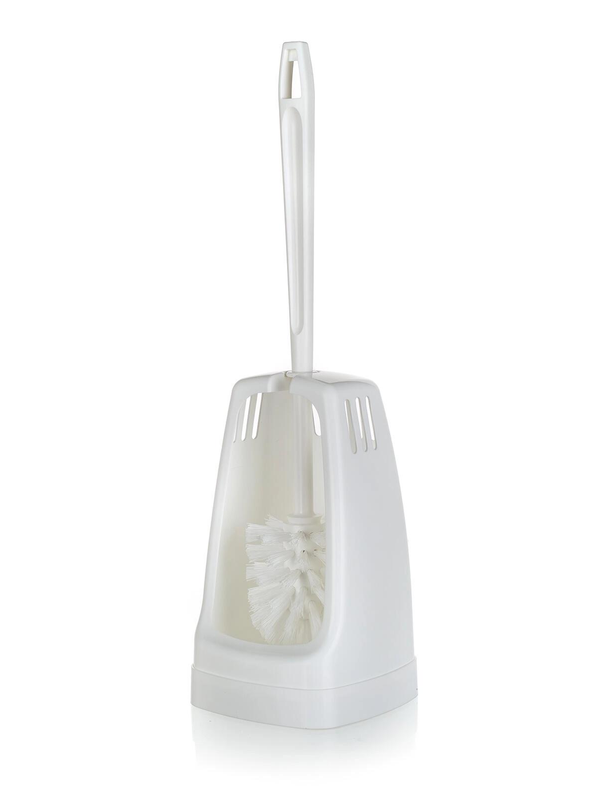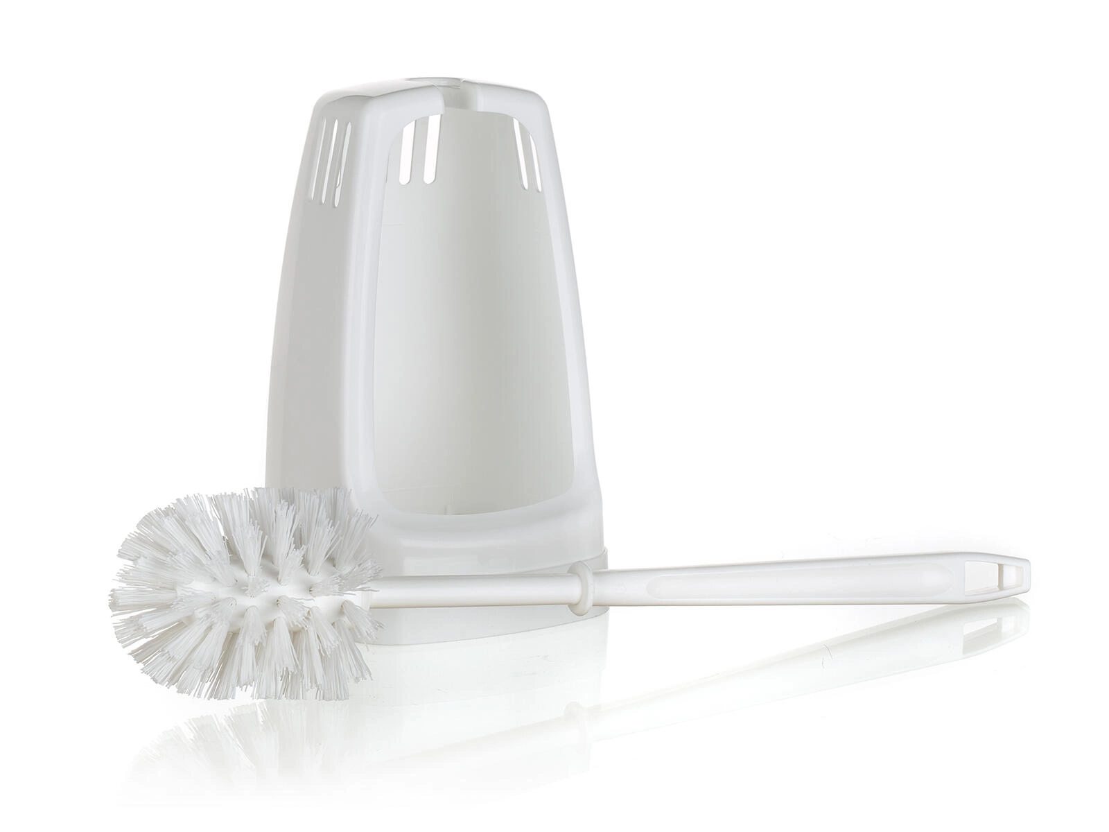 Ovaj bijeli WC set spaja jednostavan dizajn i funkcionalnost. Kvadratni plastični držač je stabilan i nenametljiv, a četka sa sintetičkim vlaknima učinkovito uklanja nečistoće i olakšava redovito održavanje toaleta.