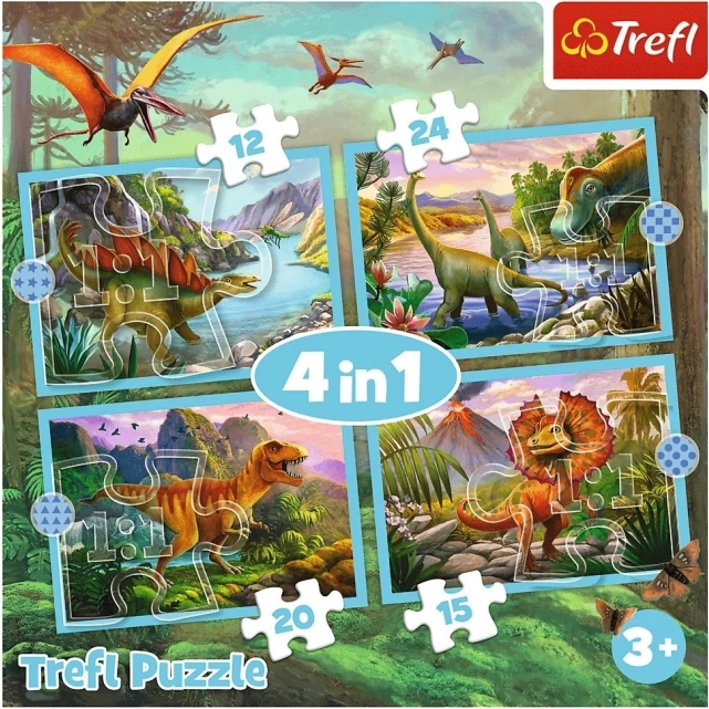Trefl puzzle 4 u 1 Iznimni dinosauri je pakiranje koje će razveseliti svakog malog arheologa! Sadrži četiri različite slagalice s motivima dinosaura, svaku s različitim brojem dijelova (12, 15, 20, 24). Nakon slaganja nastaju četiri slike dimenzija 285 x 205 mm, što jamči zabavu i za mlađe i za starije zaljubljenike u puzzle igre.