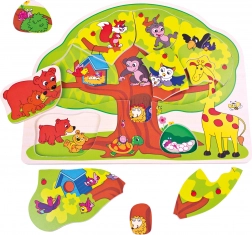 Slagalica je u obliku stabla i sadrži 11 zasebnih dijelova sa životinjicama te čvrstu podlogu. Zahvaljujući izdržljivoj šperploči idealna je za svakodnevnu upotrebu kod kuće i u vrtiću.