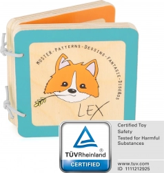 Drvena senzorna knjižica s liscem Lexom nudi djeci prvi susret s jednostavnim oblicima, izrezima i ilustracijama koje potiču znatiželju i maštu. Robusna izrada, glatki rubovi i metalni prstenovi osiguravaju sigurno i udobno listanje i za najmanje ručice.