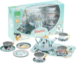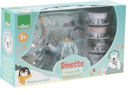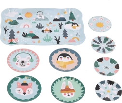 U pakiranju je sve za savršenu čajanku: veliki poslužavnik za lako posluživanje, 4 šalice s tanjurićima, 4 desertna tanjura i čajnik s poklopcem. Dijelovi su lagani, izdržljivi i jednostavni za održavanje. Dizajn Michelle Carlslund s prijateljskim životinjama potiče dječju maštu i nježno razvija socijalne vještine kroz zajedničku igru.