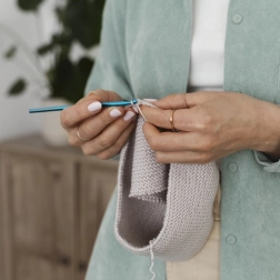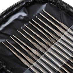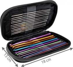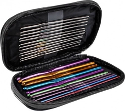 Kompaktna torbica od sintetičke kože drži sve alate na okupu i omogućava jednostavno prenošenje. Idealni pratilac na putovanjima bilo da heklate u automobilu ili u vlaku.