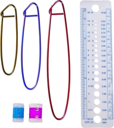 Sadrži sve što vam treba za ručni rad: kukice, škare, ravnalo, igle s nastavcima, osigurače šavova, pokazatelje i sigurnosne igle. Šareni dodaci ne samo da će uljepšati vaše kreativne trenutke, već će i rad učiniti ugodnijim.