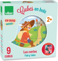 Drvene kocke Vilac Priče donose djeci radost otkrivanja i slaganja. Od devet čvrstih kocaka složit ćete šest različitih bajkovitih motiva koji razvijaju maštu i uče djecu koncentraciji. Zahvaljujući čvrstom drvu i kvalitetnom tisku, igračka je izdržljiva i prikladna za svakodnevnu igru.