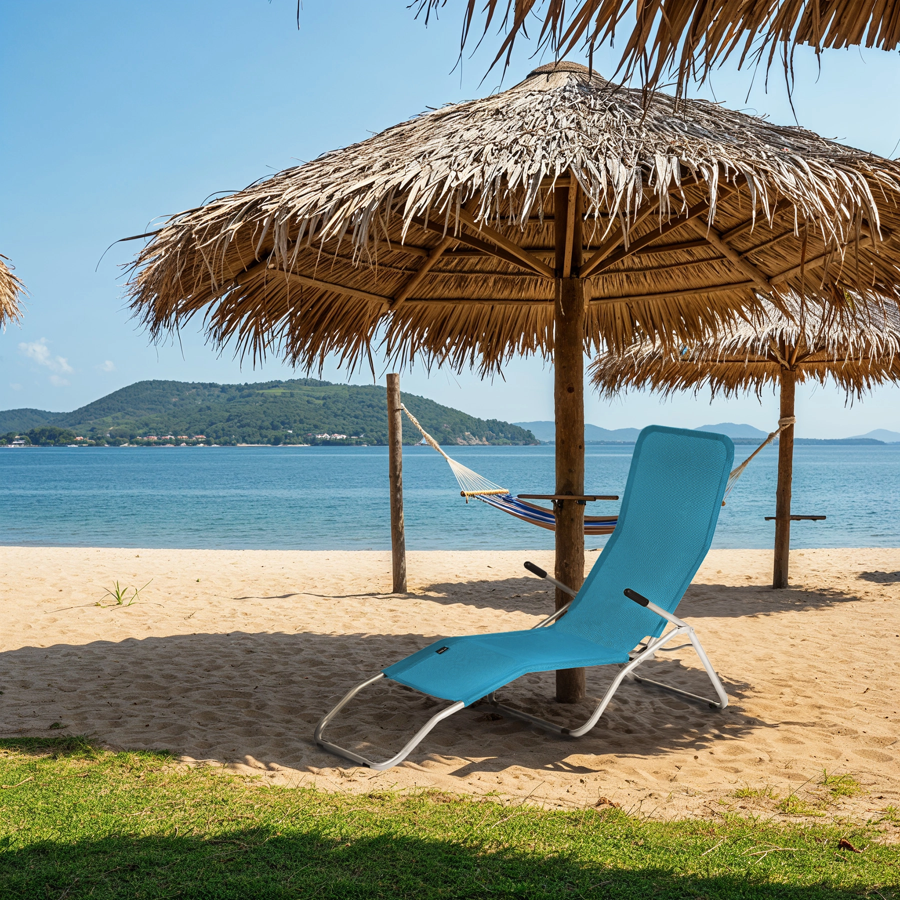 Model je u potpunosti sklopiv i spreman za trenutačnu upotrebu bez montaže. Niska masa od 5 kg olakšava prenošenje i prijevoz u automobilu. Idealno za vrt, terasu, uz bazen, kampiranje i plažu.