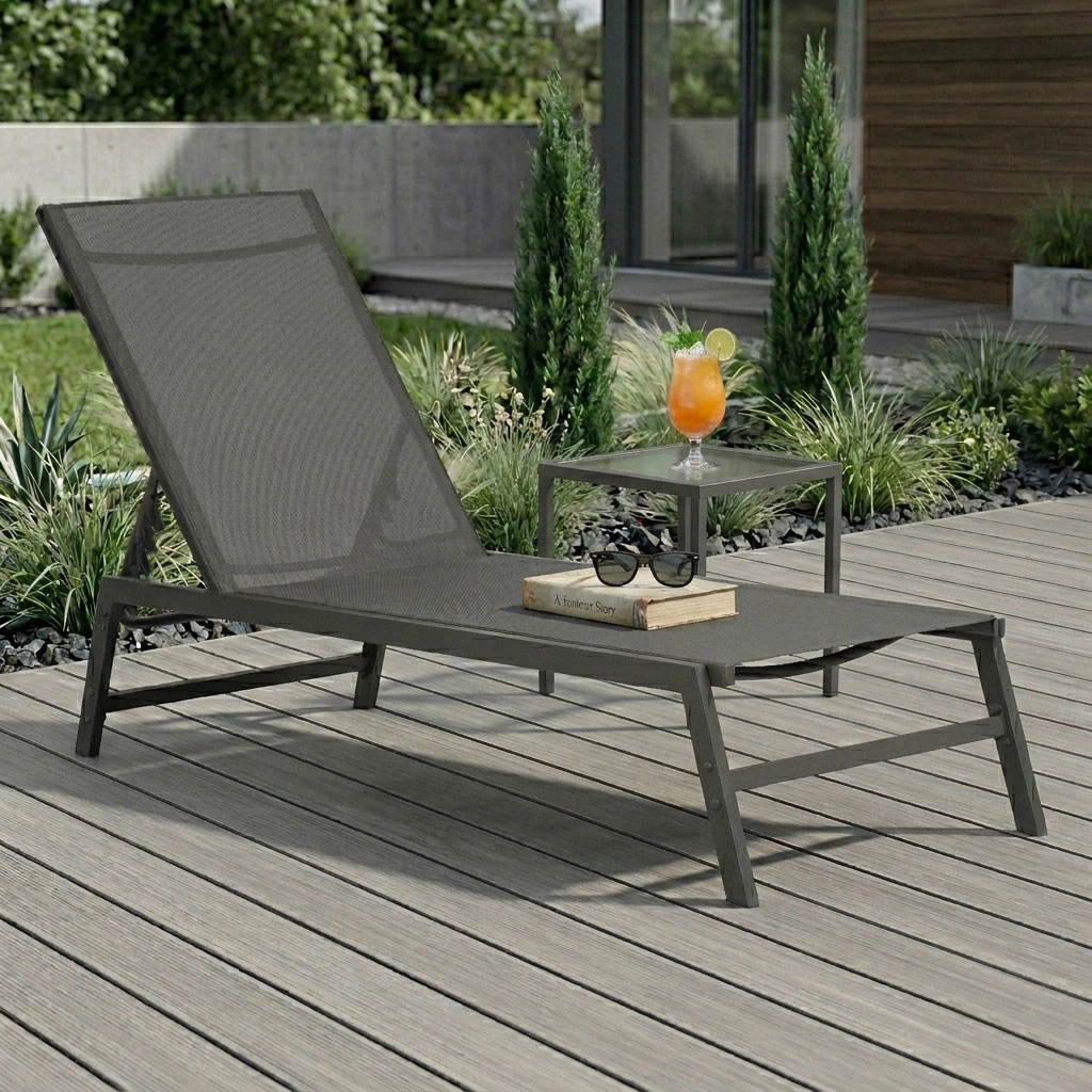 Uživajte u udobnosti i stilu dok se opuštate u vrtu, na terasi ili uz bazen. Ova siva ležaljka spaja minimalistički dizajn s dugim vijekom trajanja i jednostavnim održavanjem. Prozračna mrežica brzo se suši i prilagođava tijelu, a čelični okvir s praškastim premazom osigurava otpornost na vremenske uvjete.