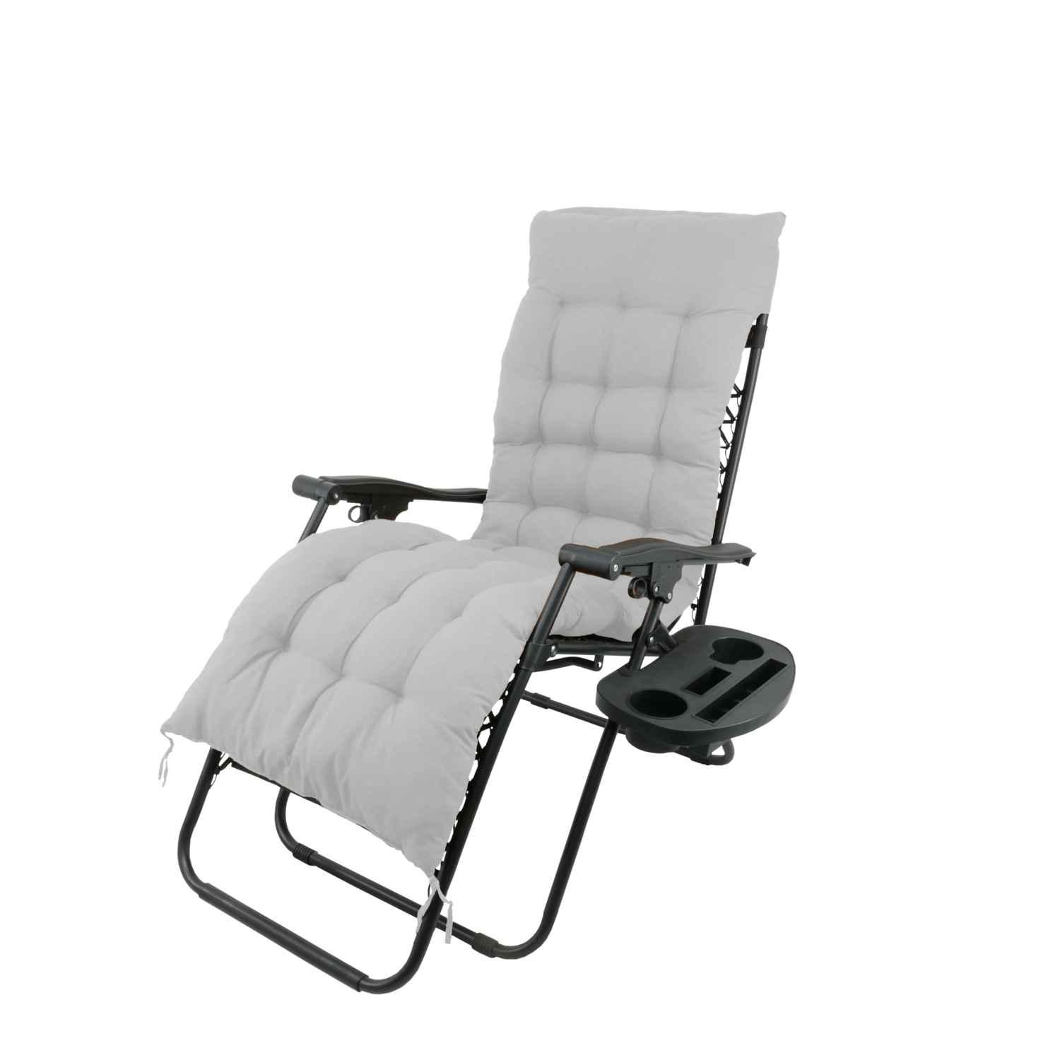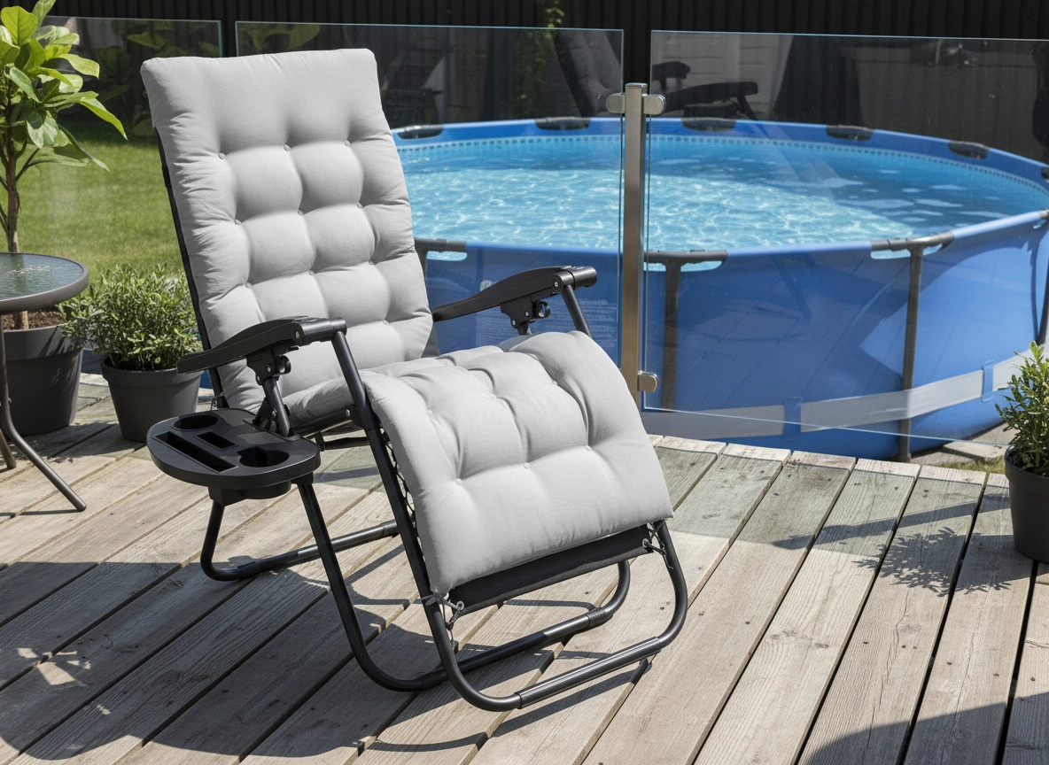Uživajte u udobnosti i opuštanju na otvorenom sa stilskom ležaljkom s crnim metalnim okvirom i sivim jastukom. Zahvaljujući sklopivoj konstrukciji, glatkom podešavanju nagiba i bočnom stoliću za piće i telefon, idealna je za vrt, terasu i balkon. Za maksimalnu udobnost tu su odvojivi nasloni jastuk i protuklizne kapice za stabilnost.