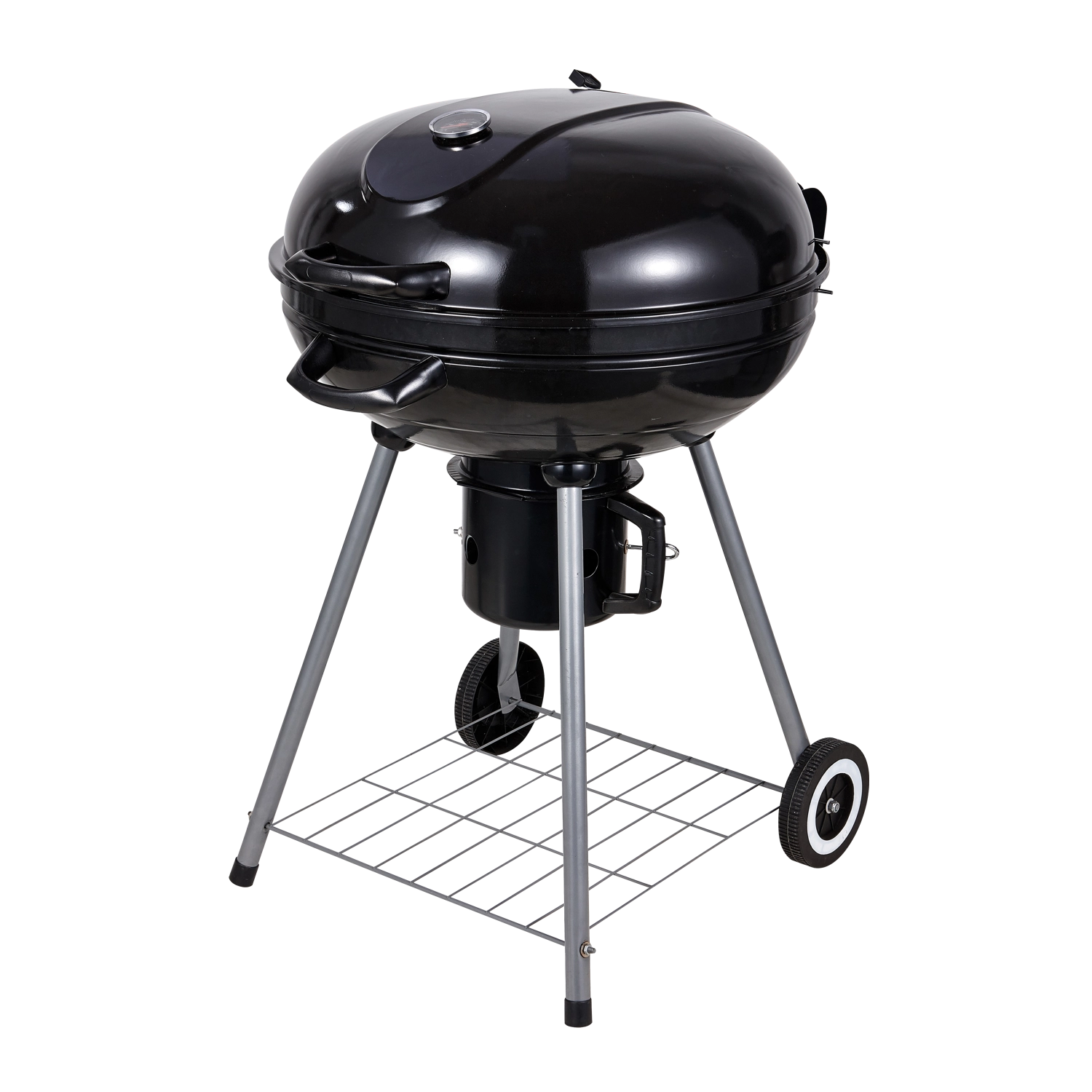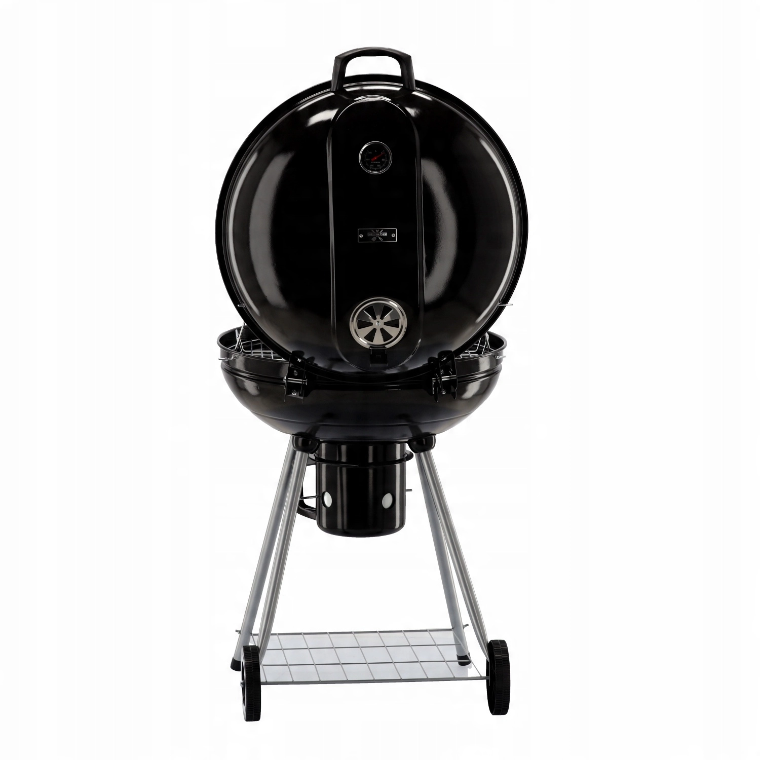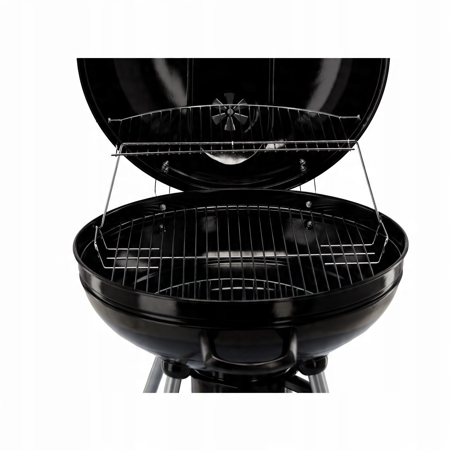 Ovaj klasični okrugli roštilj na ugljen spaja tradicionalnu dimljenu aromu s modernom opremom za maksimalnu udobnost. Poklopac s ventilacijskim otvorom i ugrađenim termometrom olakšava kontrolu temperature bez nepotrebnog podizanja. Emajlirana posuda i poklopac odlično zadržavaju toplinu i otporni su na koroziju.