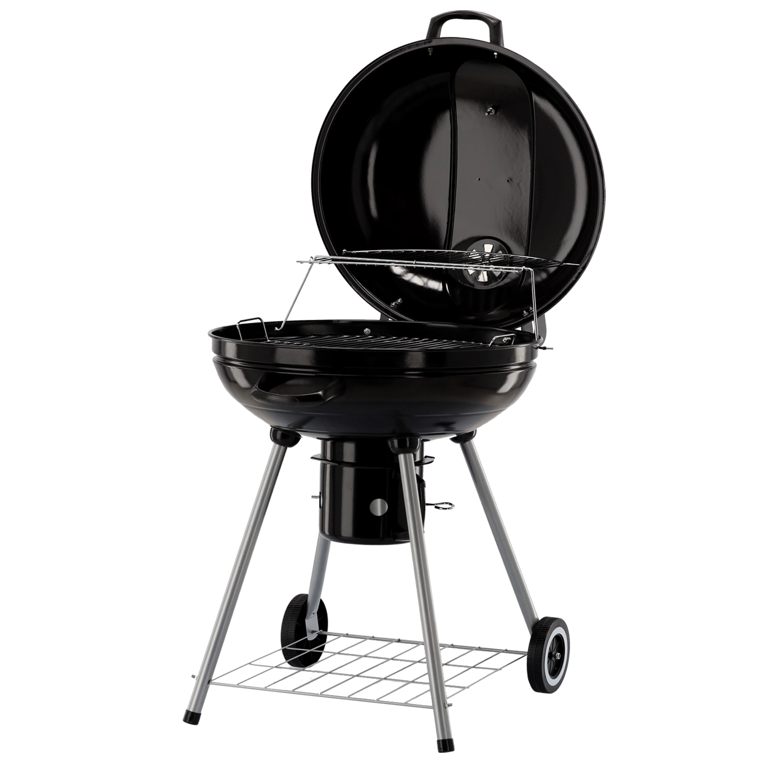 Uživajte u autentičnom okusu roštiljanja s okruglim roštiljem na drveni ugljen koji nudi emailirano ložište, integrirani termometar u poklopcu, veliki kromirani rešetku i praktičnu pepeljaru. Zahvaljujući kotačima za lako premještanje i stabilnoj konstrukciji savršen je izbor za vrt, terasu i piknik.