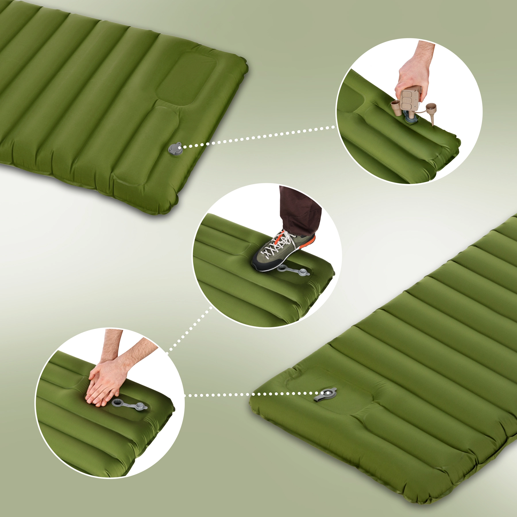 Ugrađena nožna/ručna pumpa omogućuje napuhavanje podloge bez napora i bez dodatne opreme. Putem ventila moguće je priključiti i vanjsku pumpu.