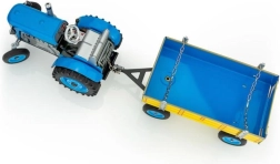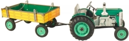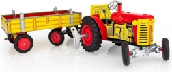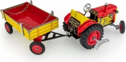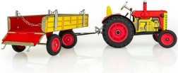 Ovaj limeni traktor Zetor s prikolicom u mjerilu 1:25 donosi autentičan doživljaj vožnje i kolekcionarsku vrijednost. Jedinstveni opružni mehanizam na ključ osigurava gladak pokret, a zahvaljujući mjenjaču s tri brzine djeca uživaju u realističnoj vožnji naprijed i unatrag. Prikolica se lako priključuje ili odvaja, a upravljanje se vrši pravim volanom; tu je i ručna kočnica za sigurno zaustavljanje.