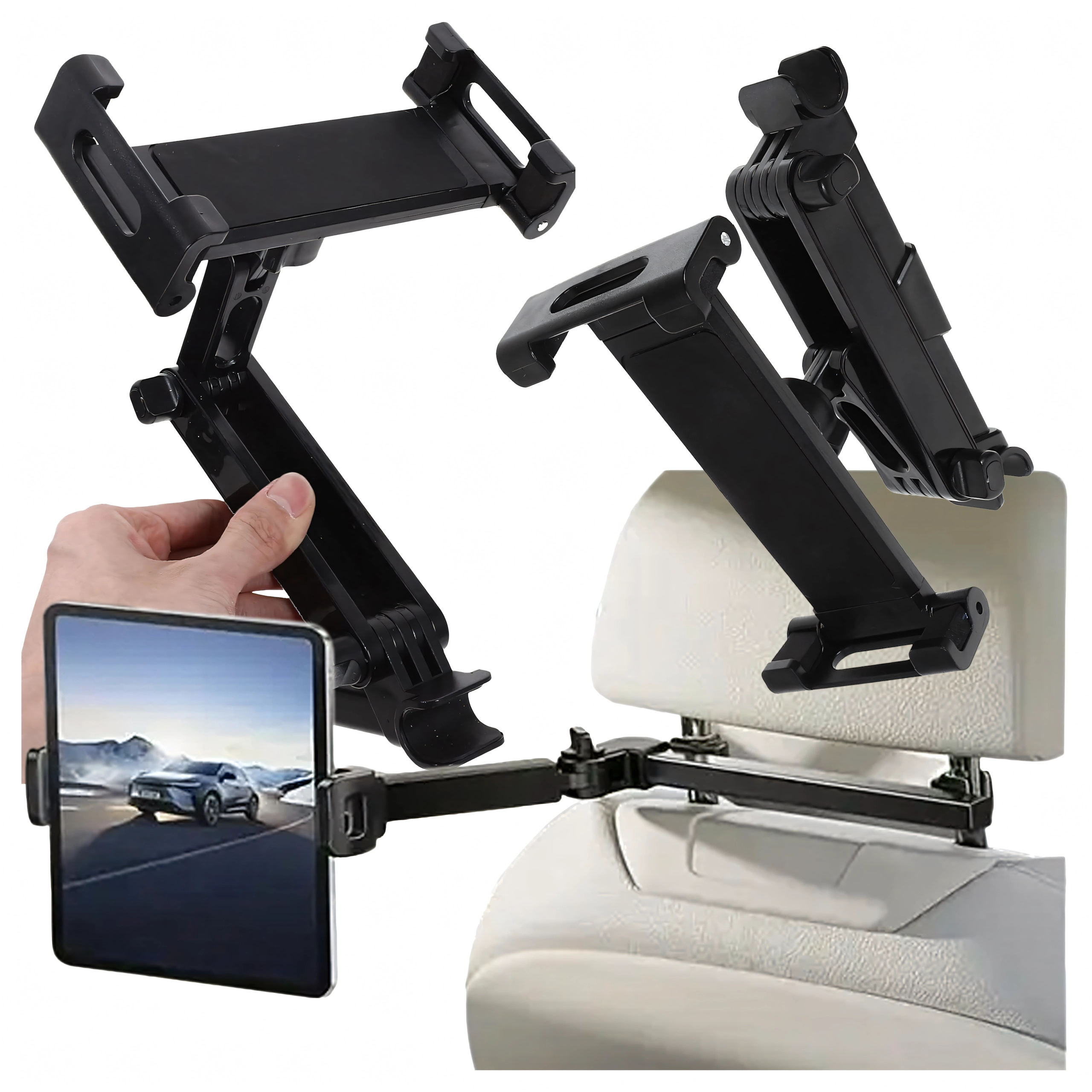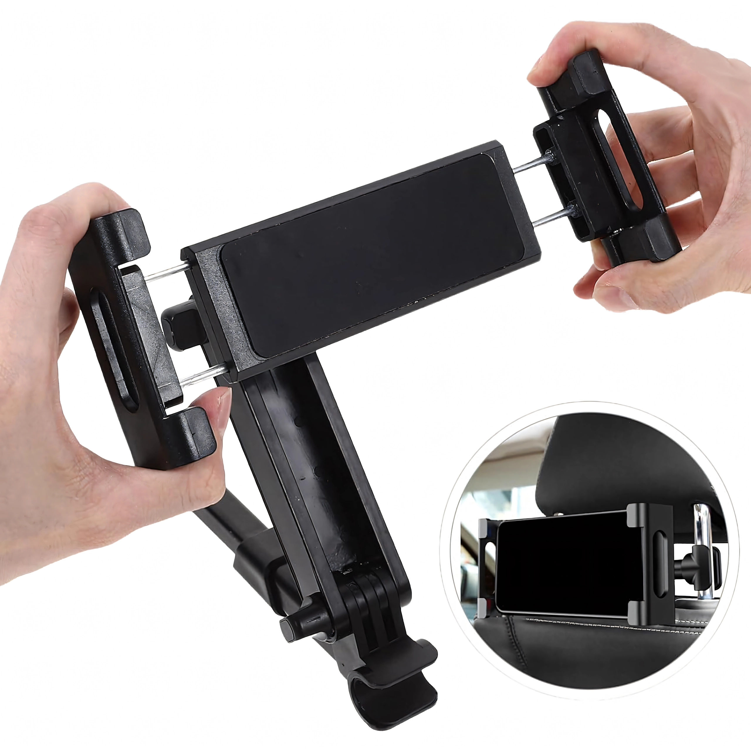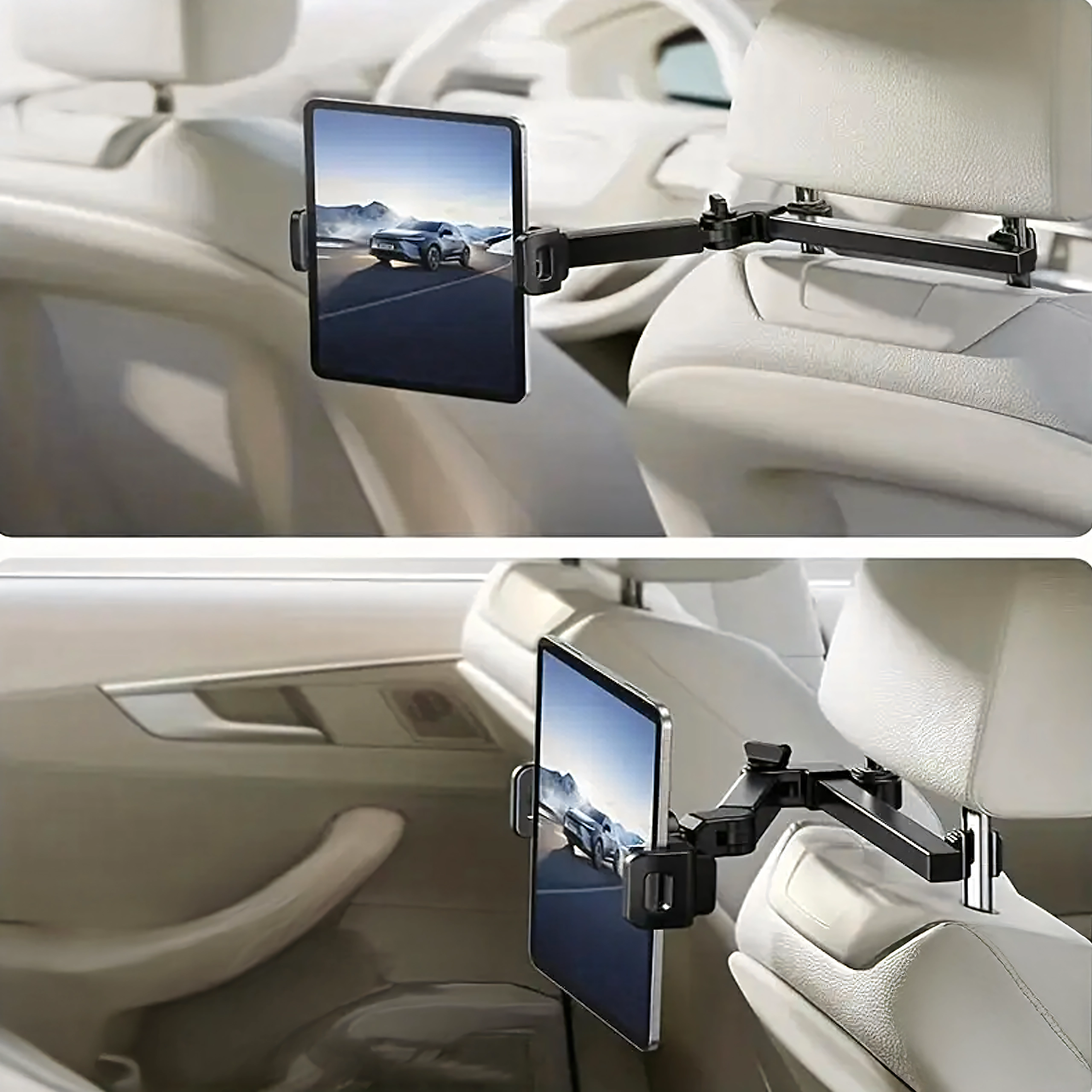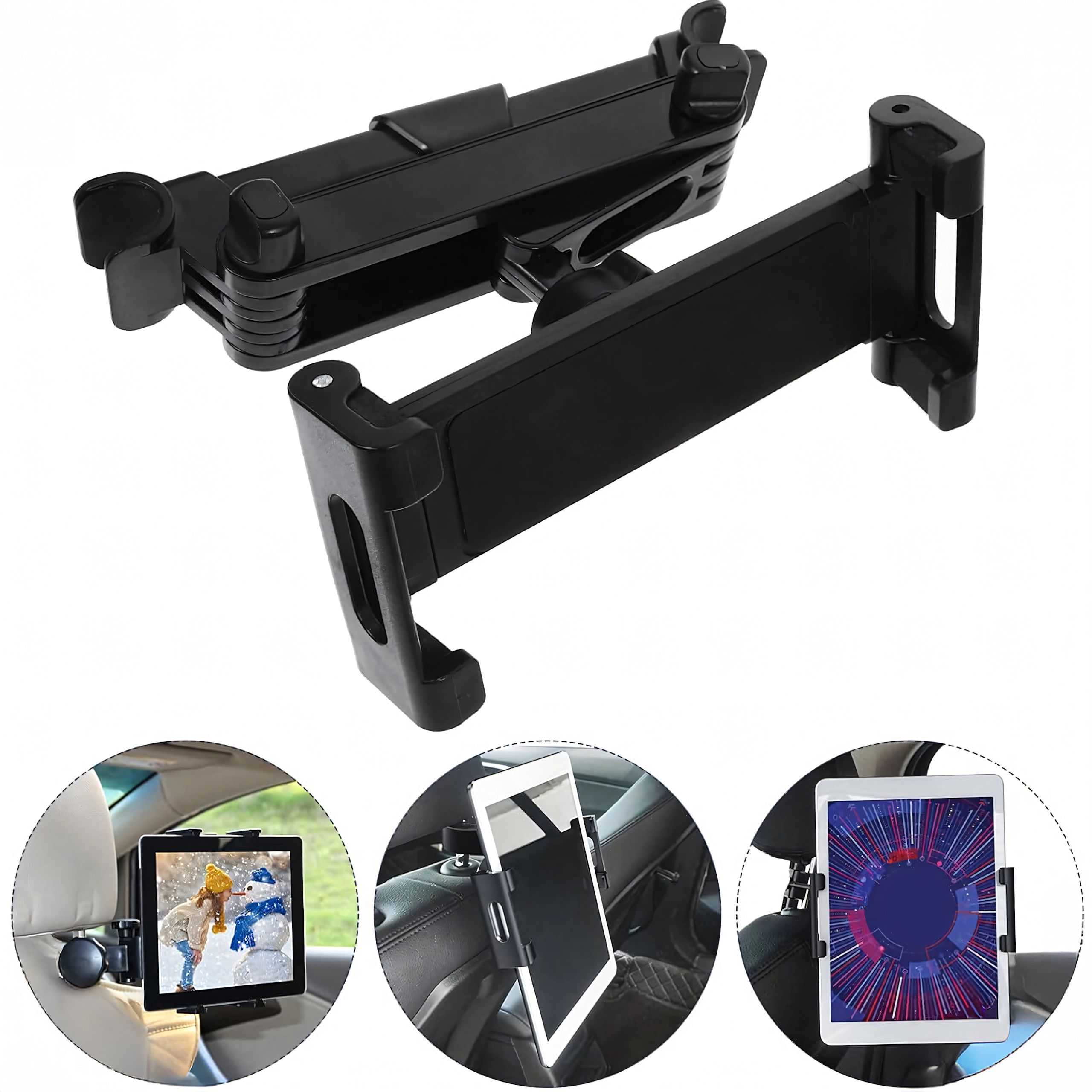 Univerzalni držač za naslon za glavu pretvara stražnje sjedalo u multimedijski kutak. Zahvaljujući zglobnoj konstrukciji i kuglastom zglobu nudi rotaciju od 360°, široku kompatibilnost s telefonima i tabletima te čvrsto pričvršćivanje bez podrhtavanja – idealno za filmove, igre i učenje na putovanju.