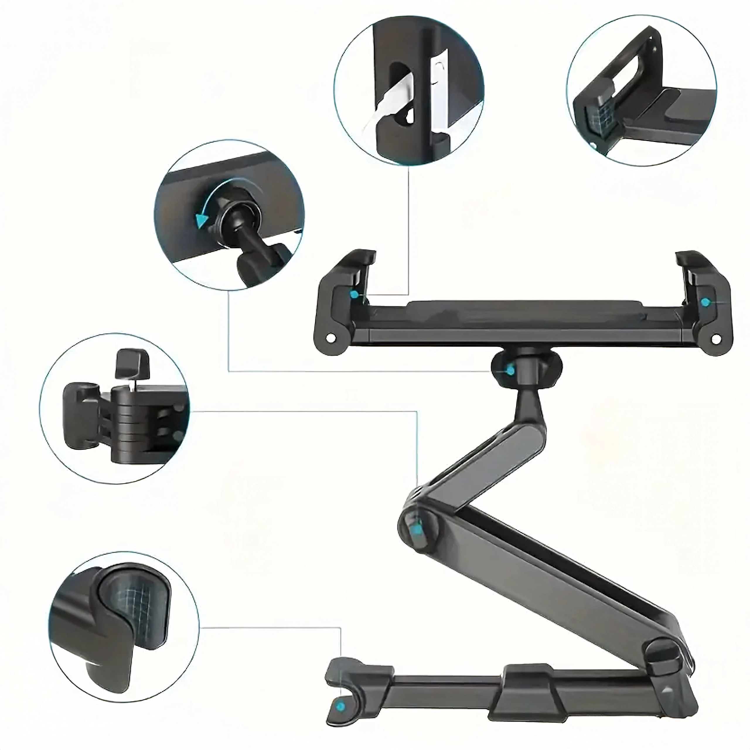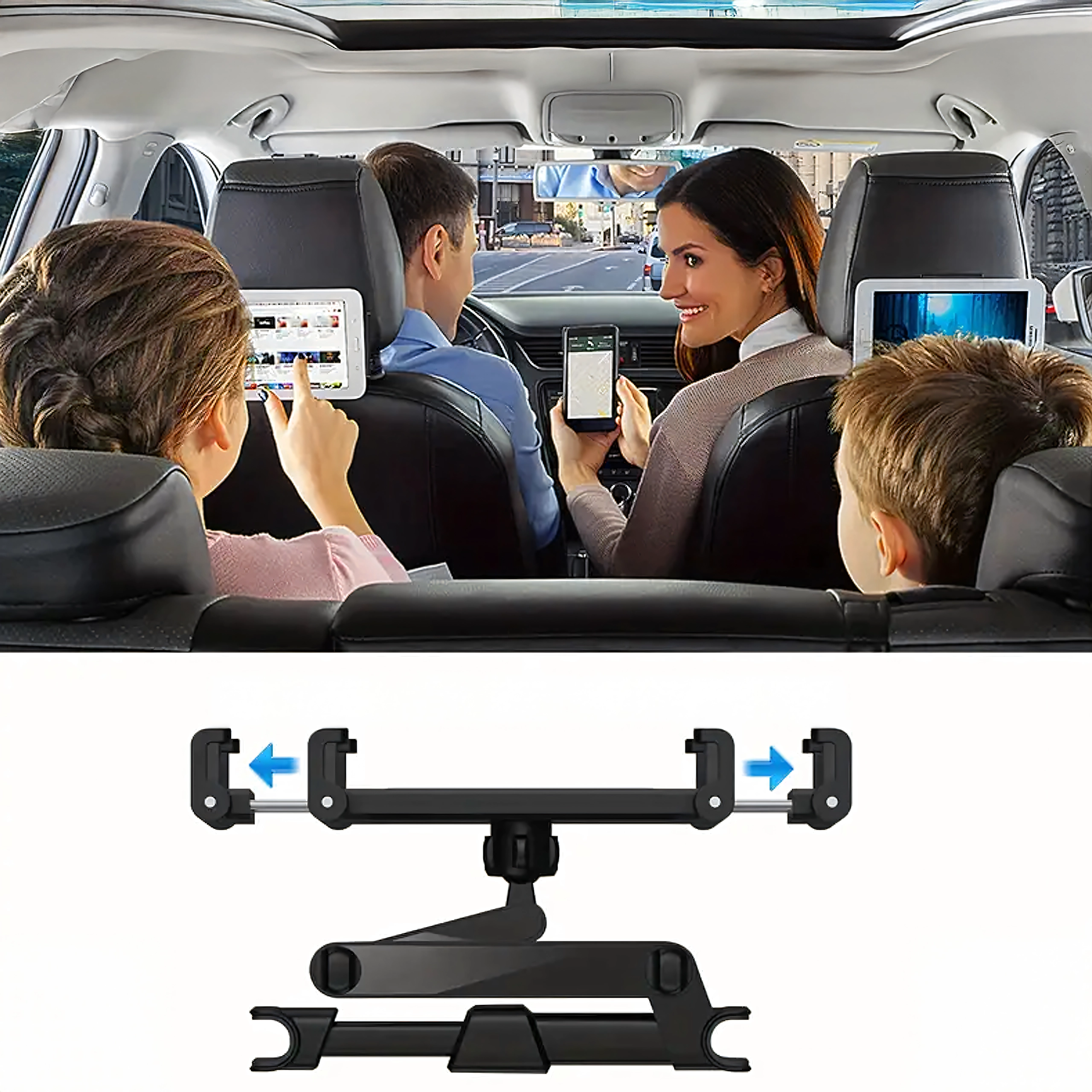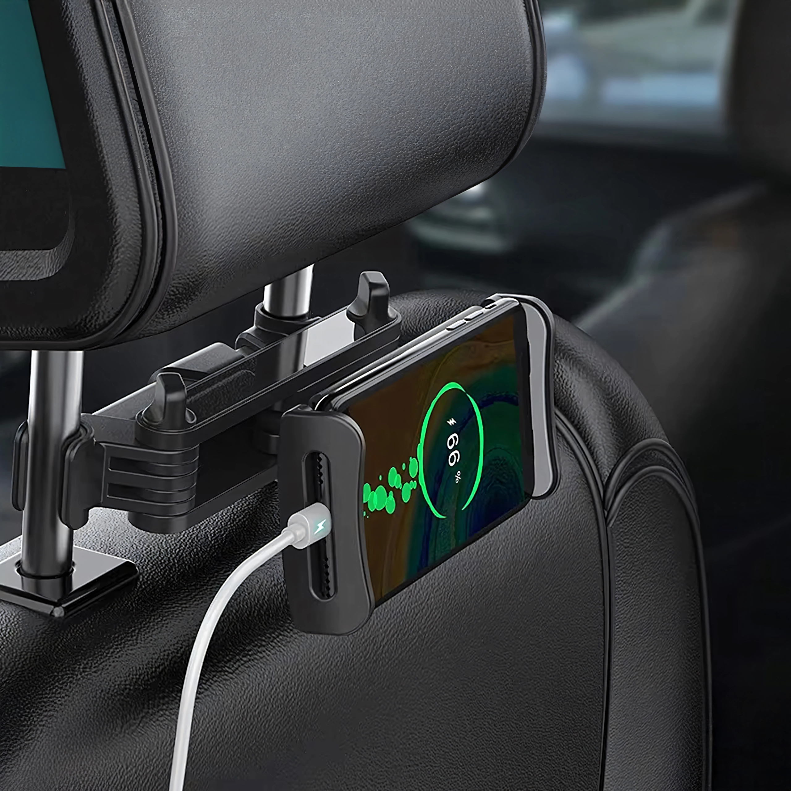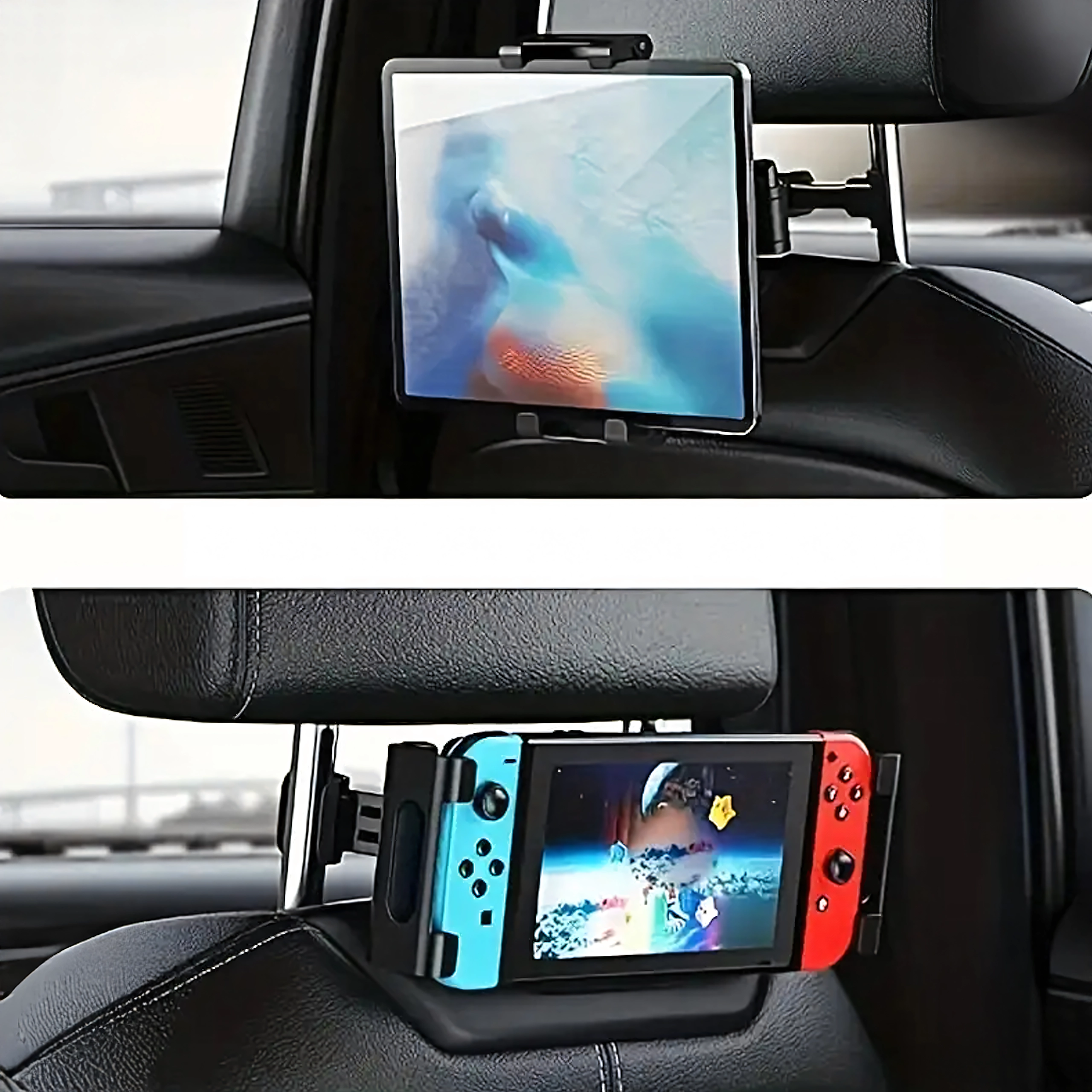 Univerzalni držač za naslon za glavu pretvara stražnje sjedalo u multimedijski kutak. Zahvaljujući zglobnoj konstrukciji i kuglastom zglobu nudi rotaciju od 360°, široku kompatibilnost s telefonima i tabletima te čvrsto pričvršćivanje bez podrhtavanja – idealno za filmove, igre i učenje na putovanju.