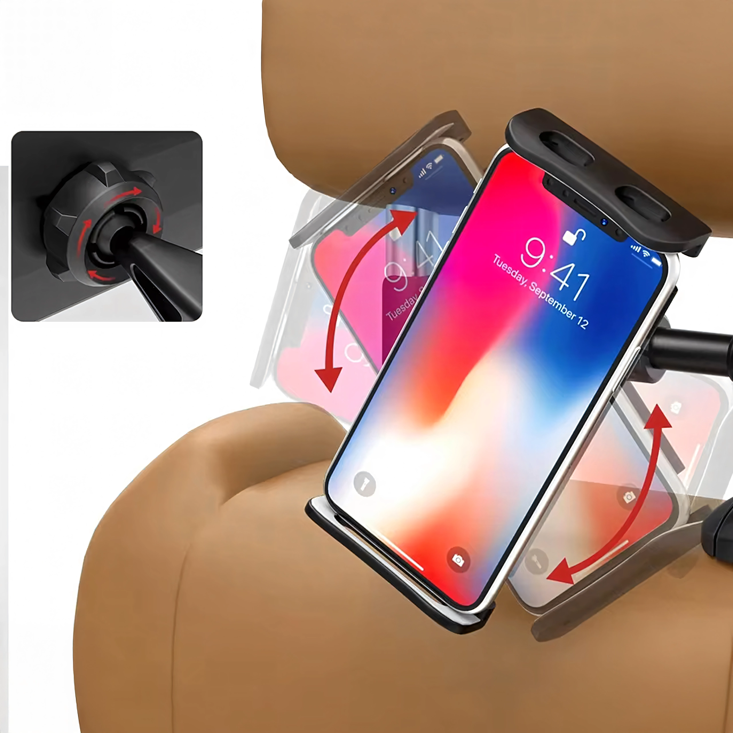 - Držač za naslon za glavu u autu za telefon i tablet