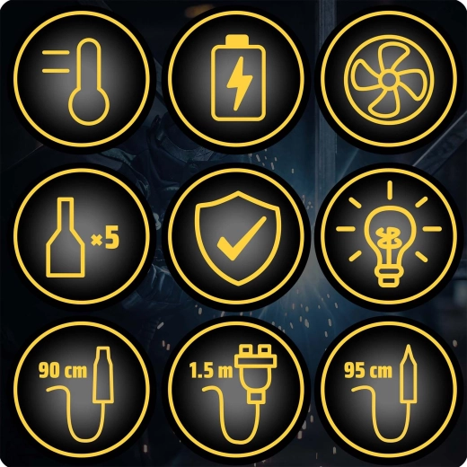 Stabilne performanse i sigurnost osiguravaju bezkomutatorski ventilator, kalibracija temperature i automatsko mirovanje ispod 80 °C za dulji vijek trajanja i uštedu energije. Praktični držač ručke i spužvica za čišćenje povećavaju udobnost rada.