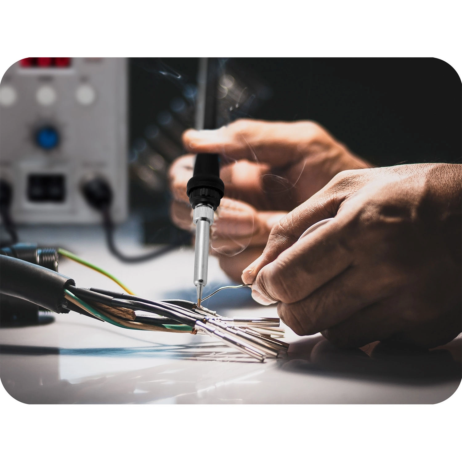 - Lemilica (200–500 °C / 60 W): kontrolirana toplina za fine spojeve, THT, kabele i male SMD s konusnim vrhom.