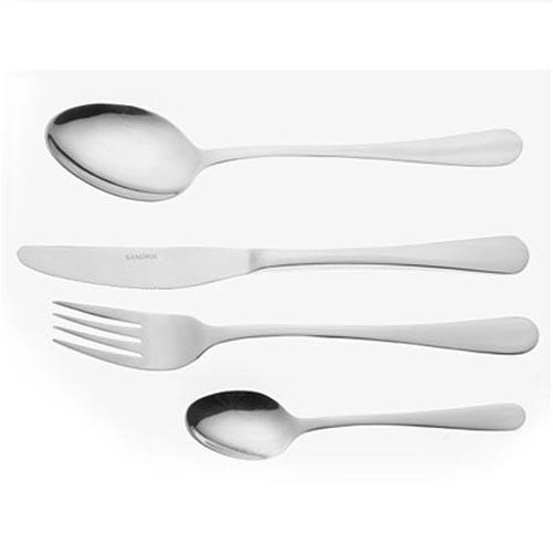Elegantni set pribora za jelo u klasičnom dizajnu za svakodnevnu upotrebu u kućanstvu i ugostiteljstvu. Izrađeno od kvalitetnog nehrđajućeg čelika za dug vijek trajanja, jednostavno održavanje i bezvremenski izgled. Potpuni set od 24 dijela pokriva posluživanje za cijelu obitelj ili manji objekt.