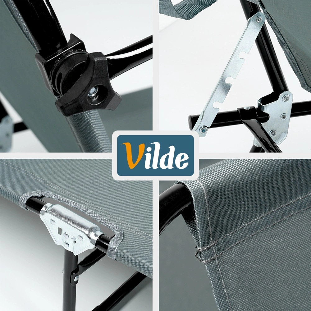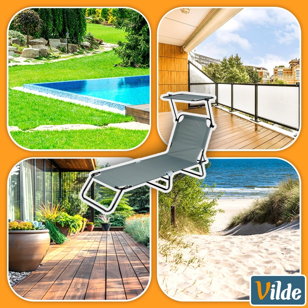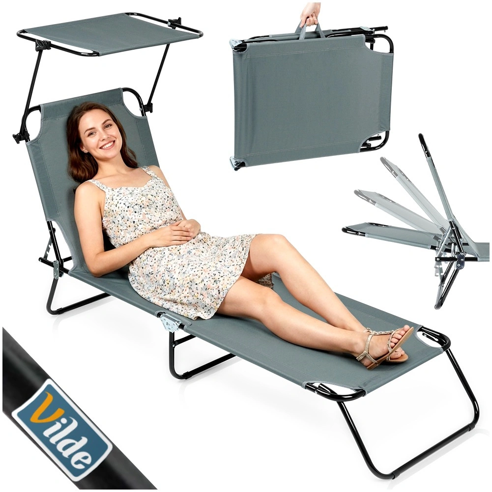 Uživajte u odmoru na svježem zraku sa sivom vrtnom ležaljkom s četiri položaja podešavanja, uključujući potpuno ležanje, te podesivom sunčanom nadstrešnicom za zaštitu od sunca. Zahvaljujući čvrstoj metalnoj konstrukciji i izdržljivoj poliesterskoj tkanini nosi do 120 kg. Ležaljka se brzo sklapa u kompaktne dimenzije, a praktične ručke olakšavaju prijenos po vrtu, terasi, balkonu ili na plaži.