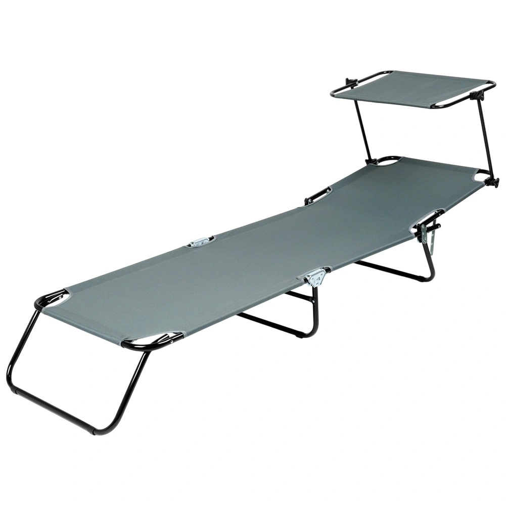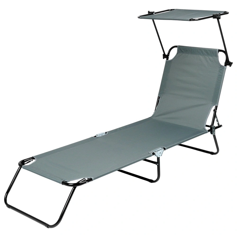 Vrtna sklopiva ležaljka s podesivom nadstrešnicom, siva