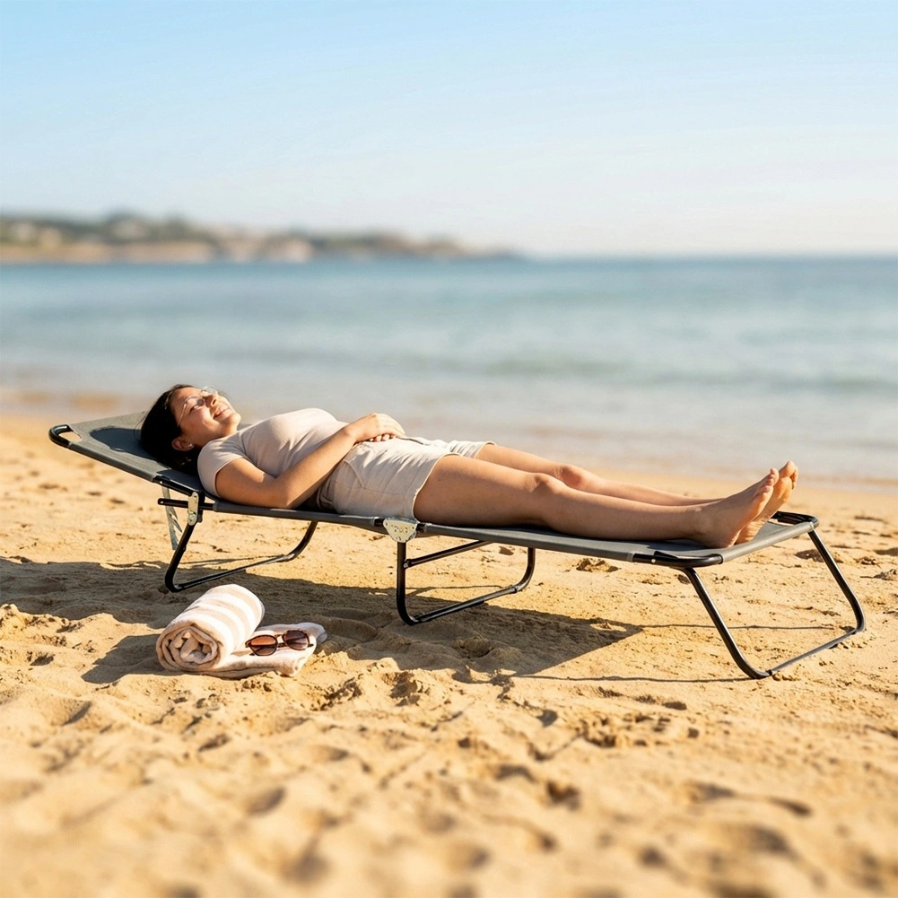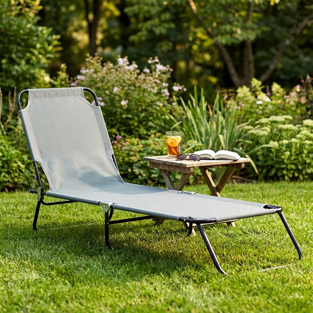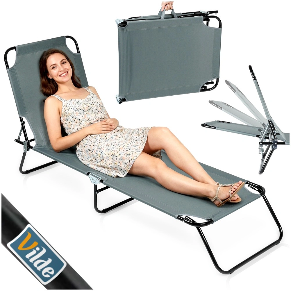 Uživajte u odmoru bilo gdje uz sklopivu vrtnu ležaljku u elegantnoj sivoj boji. Nudi 4 položaja podešavanja uključujući potpuno ravan, čvrstu metalnu konstrukciju i nosivost 120 kg. Zahvaljujući kompaktnim dimenzijama nakon sklapanja i praktičnim ručkama idealna je za vrt, terasu, balkon te plažu ili kampiranje.