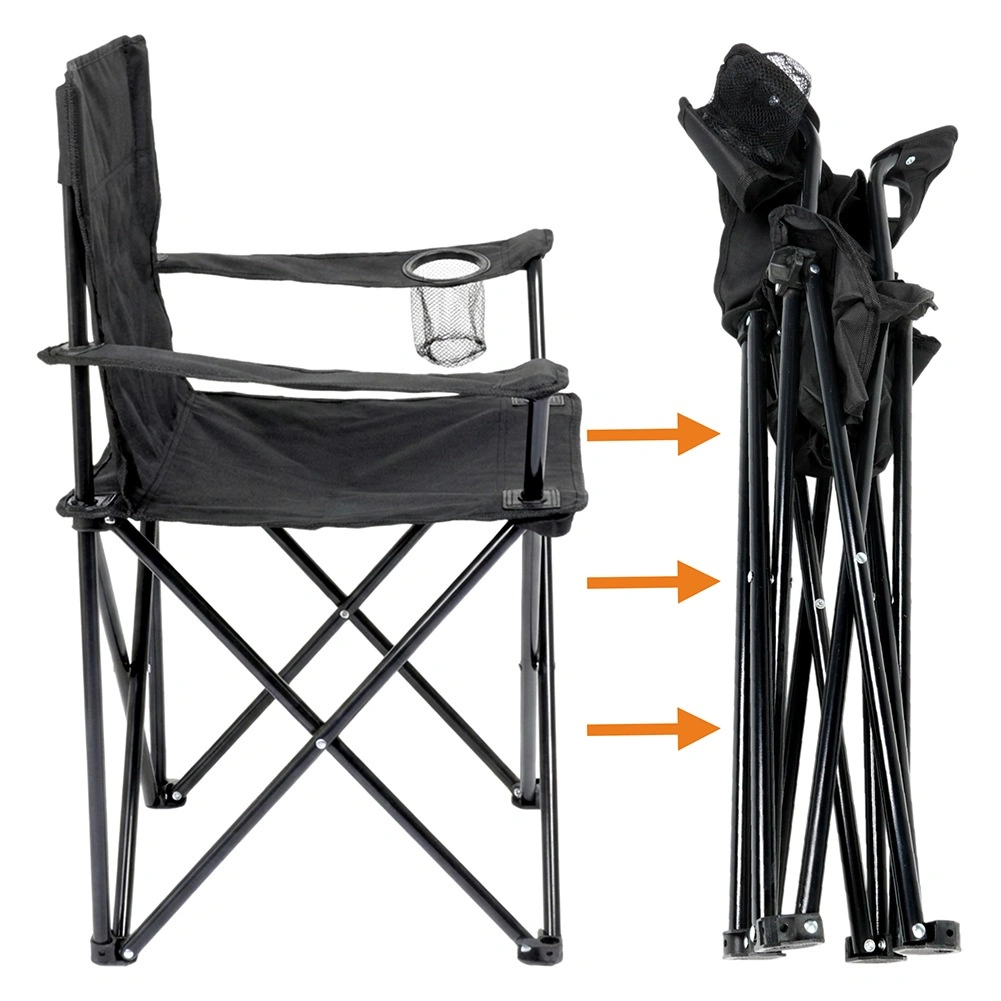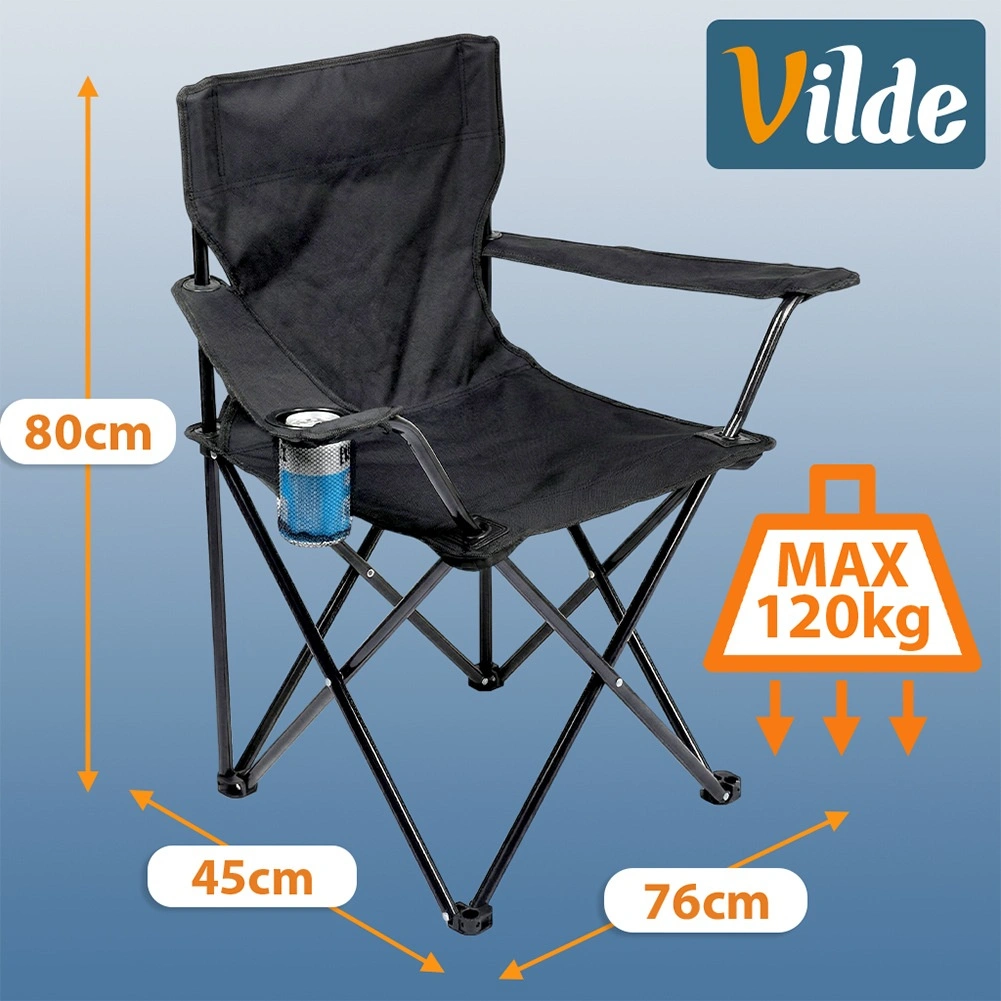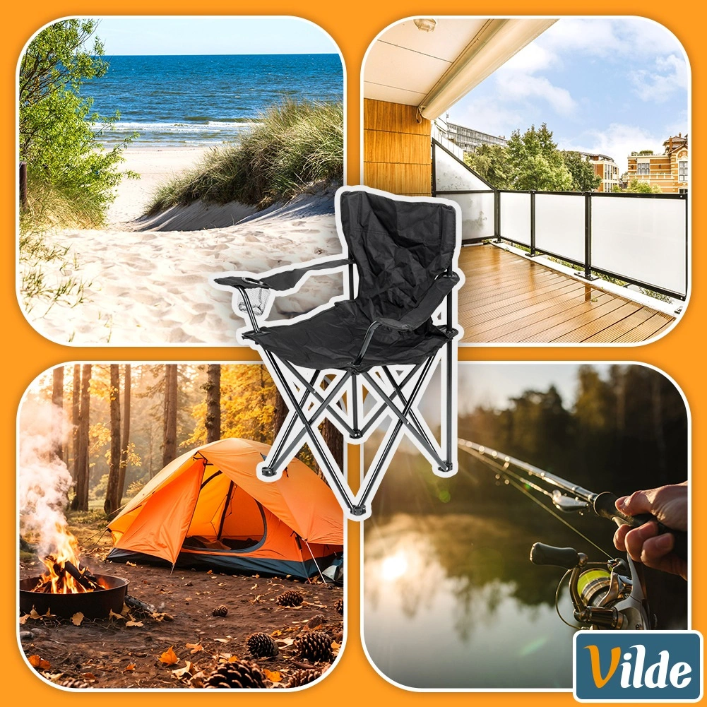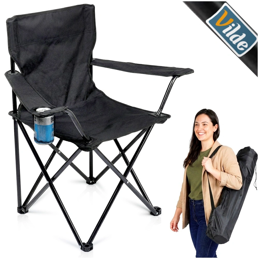 Lagana i sklopiva kamp stolica s čvrstom metalnom konstrukcijom i izdržljivim poliesterskim presvlakom u crnoj boji. Jednostavno se sklapa, stane u transportnu torbu s remenom i nudi naslone za ruke s držačem za piće. Idealna za kampiranje, ribolov, plažu i vrt, s nosivošću do 120 kg i otpornošću na vremenske uvjete.