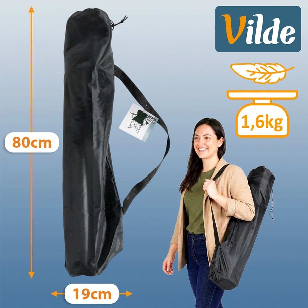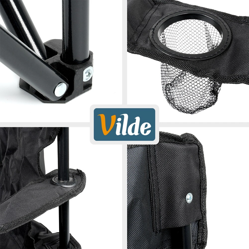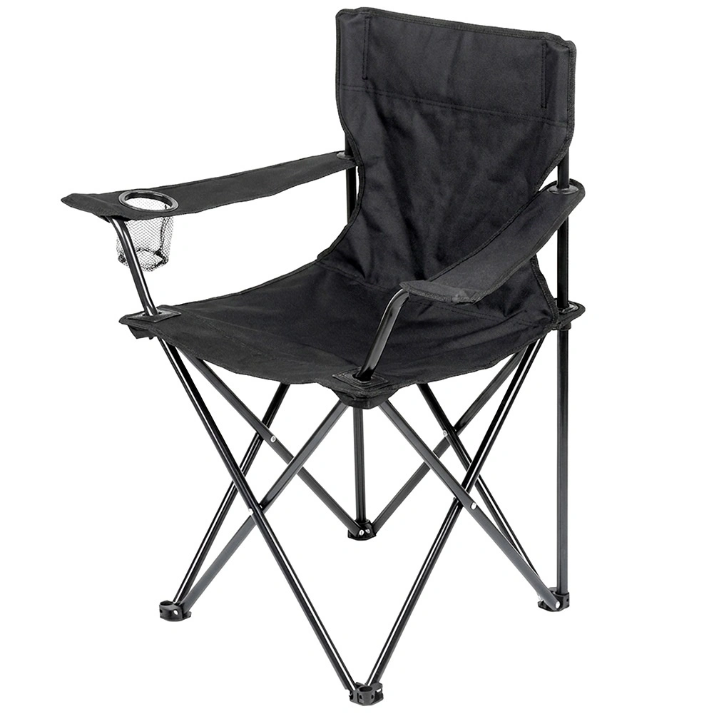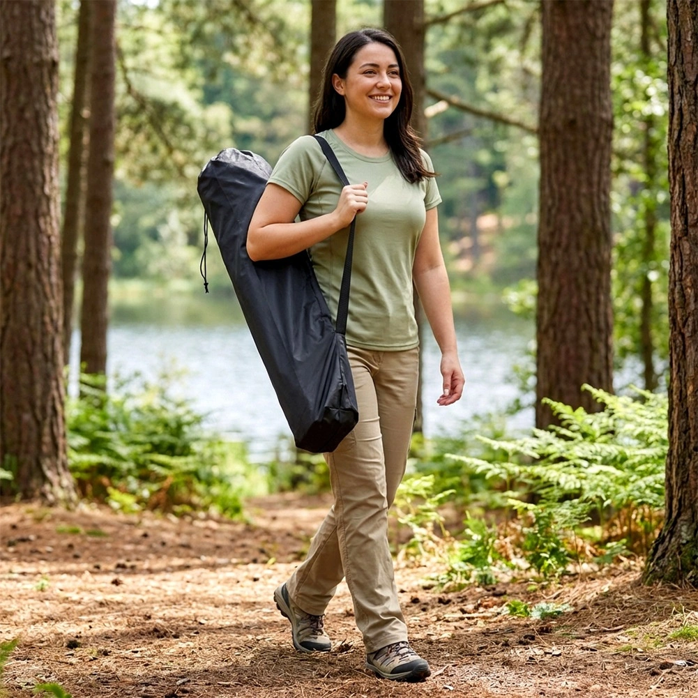 Lagana i sklopiva kamp stolica s čvrstom metalnom konstrukcijom i izdržljivim poliesterskim presvlakom u crnoj boji. Jednostavno se sklapa, stane u transportnu torbu s remenom i nudi naslone za ruke s držačem za piće. Idealna za kampiranje, ribolov, plažu i vrt, s nosivošću do 120 kg i otpornošću na vremenske uvjete.
